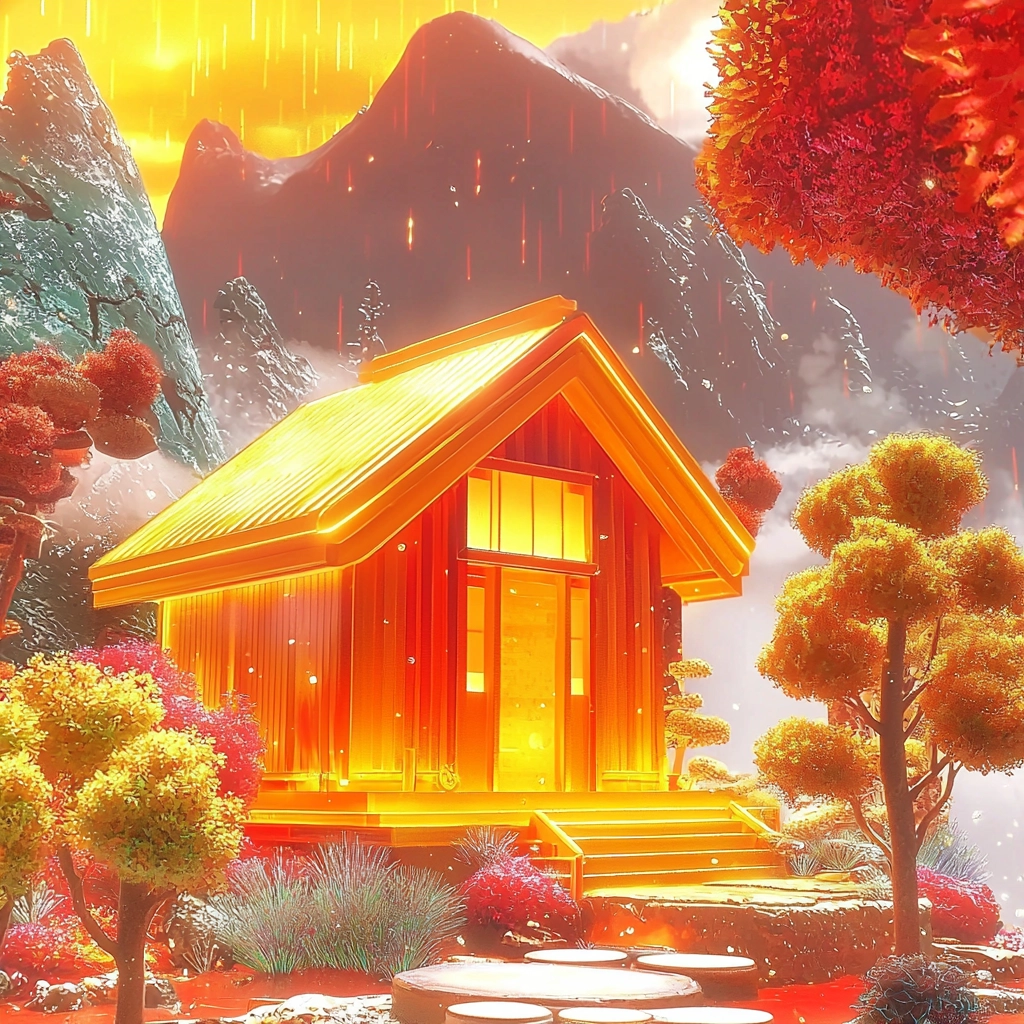 Vivid lighting effects create strong highlights and shadows, emphasizing the rich and saturated colors. Depth is enhanced through a strong spatial sense, with textures rendered in a detailed and smooth manner, resulting in a captivating visual impact.