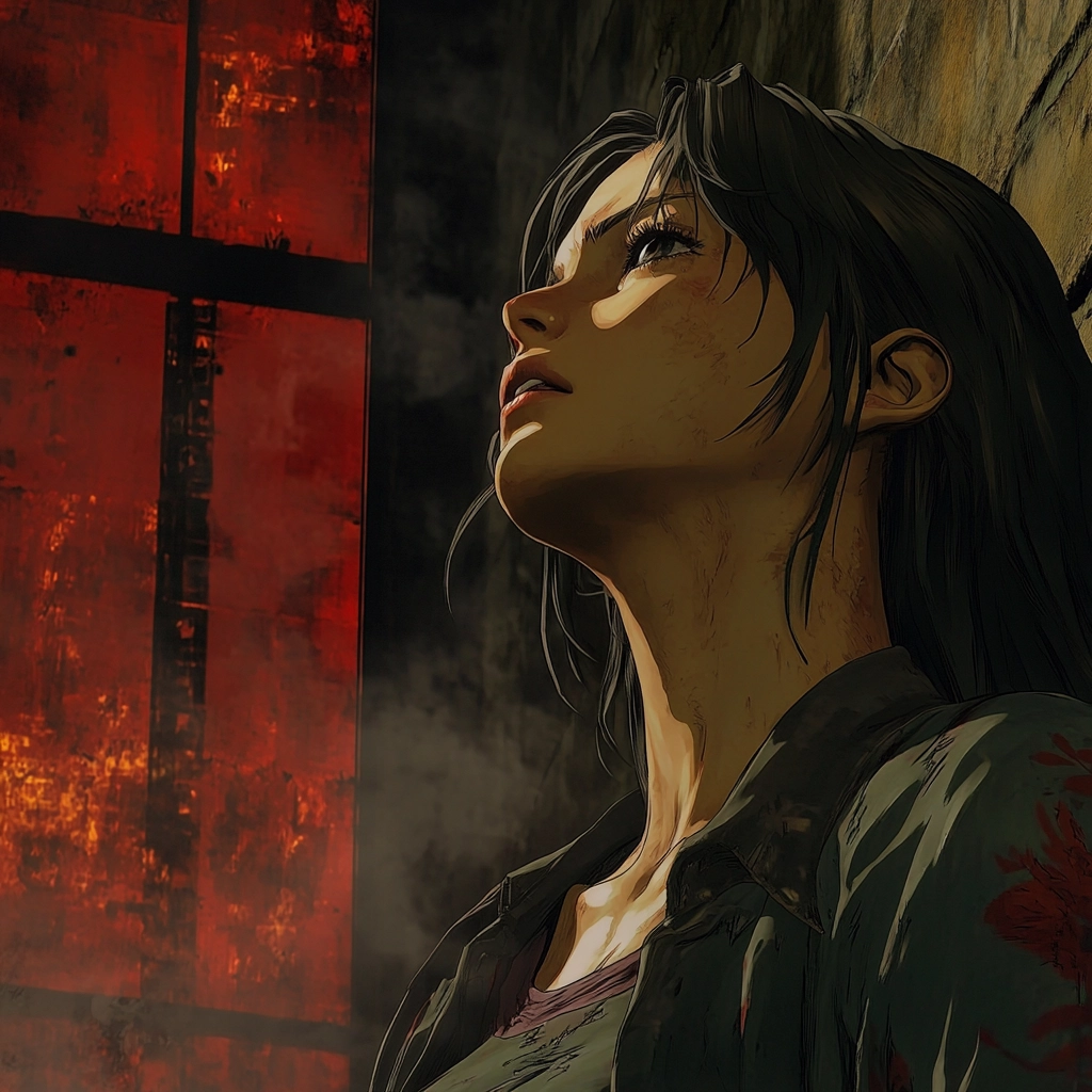 Realistic lighting captures the texture in fabrics and subtle contours, employing a rich contrast between the deep shadowed areas and luminous highlights that sculpt the form and create a dramatic spatial depth.