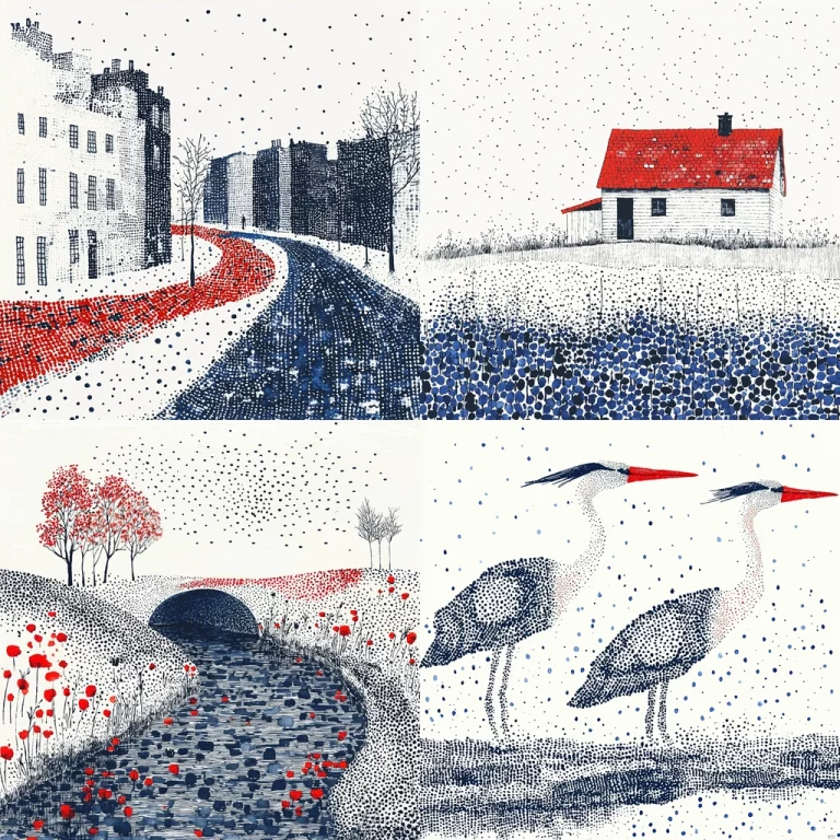 Rich textures with vibrant contrasts and clear compositions, creating a sense of realism.