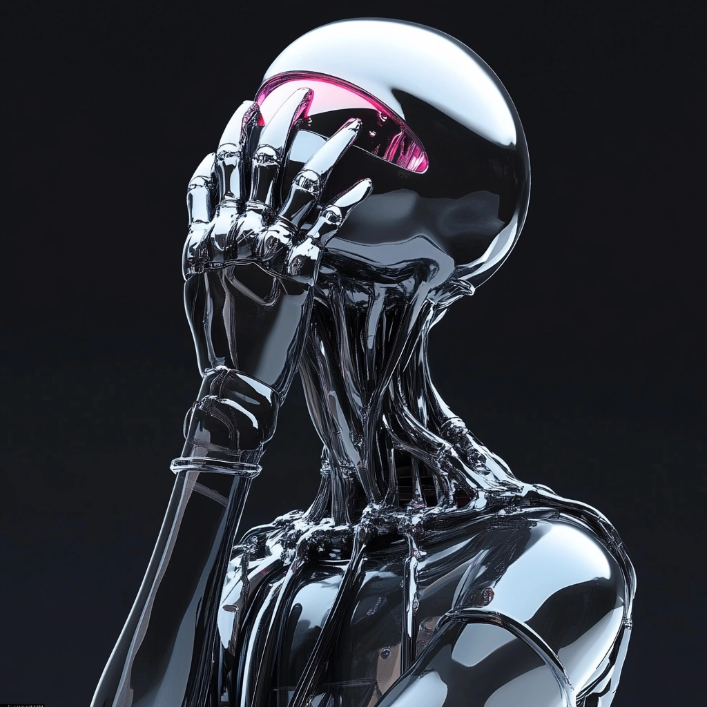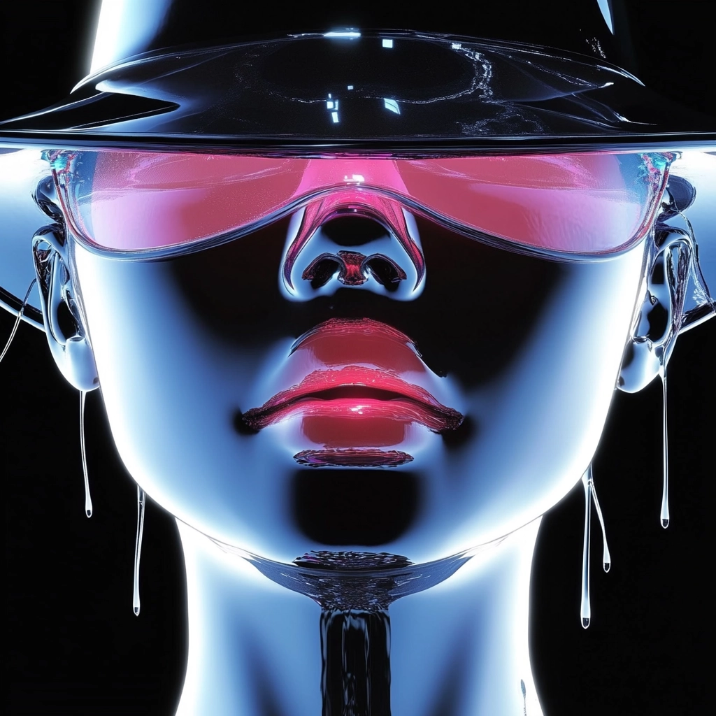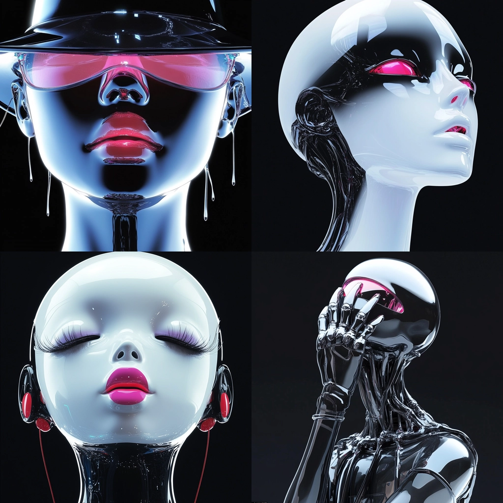High contrast compositions featuring reflective metallic surfaces against a dark background.