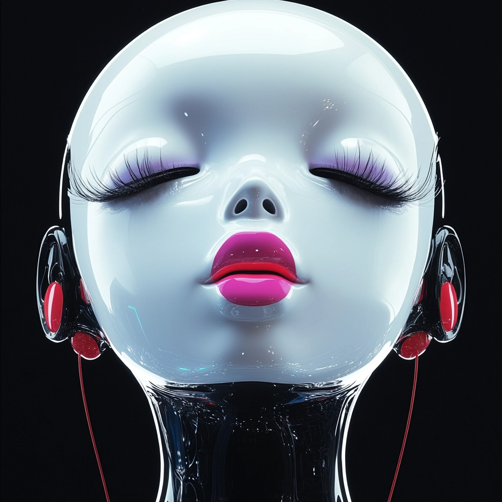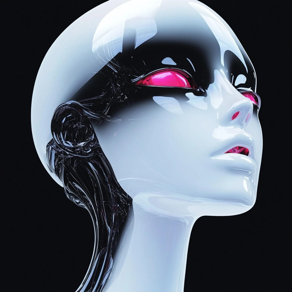 The lighting emphasizes the reflective and smooth texture of the metallic surfaces, creating a striking contrast against the deep black background. The spatial sense is enhanced through the play of light and dark, while the texture is meticulously detailed, capturing the sheen and gloss of metal.