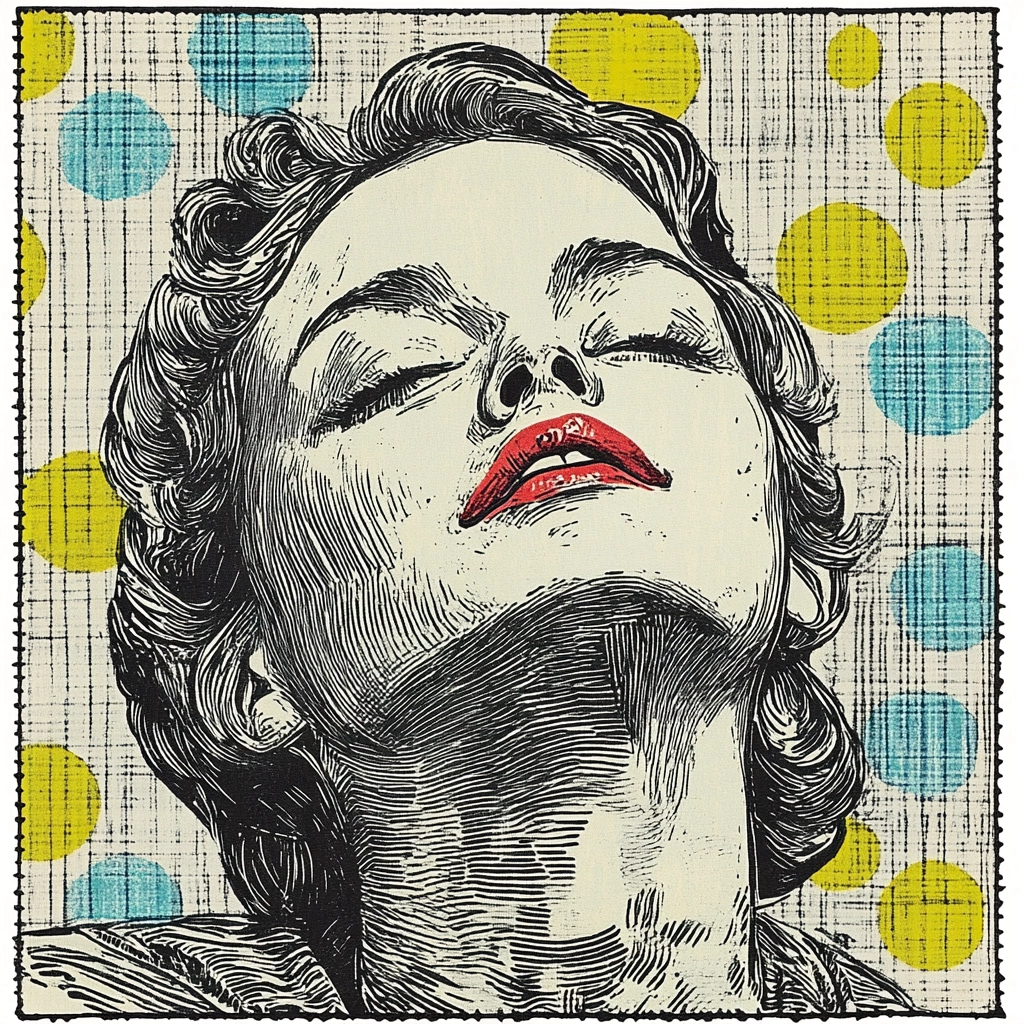 Bold contrast between monochrome line work and vibrant floral illustrations create a striking composition.