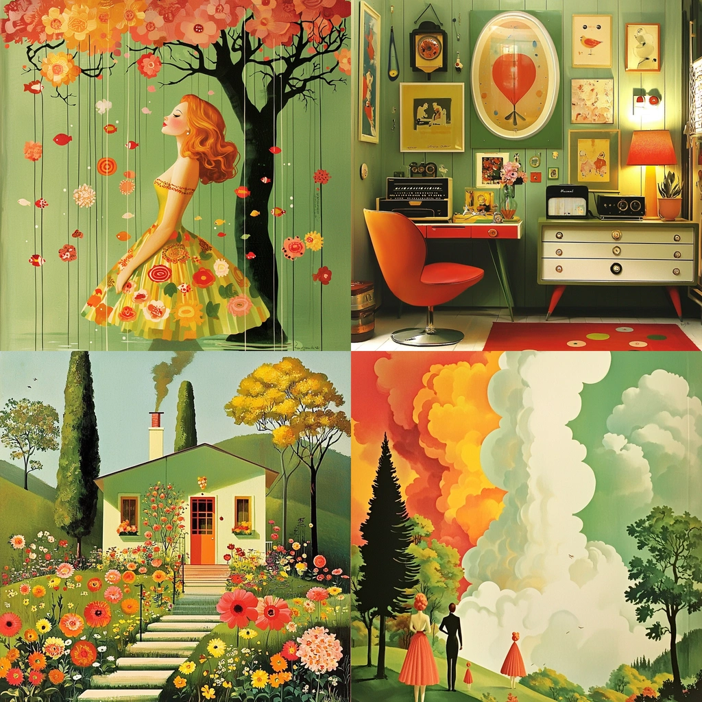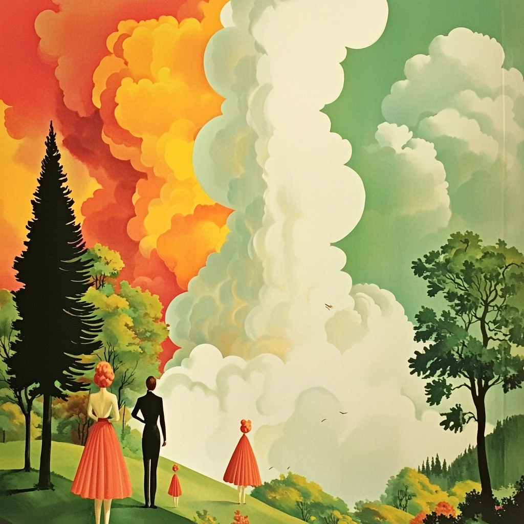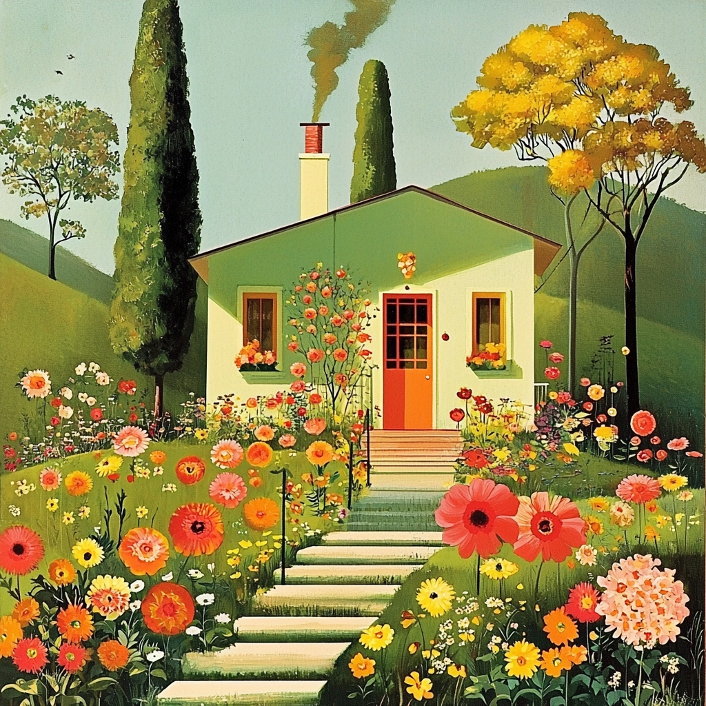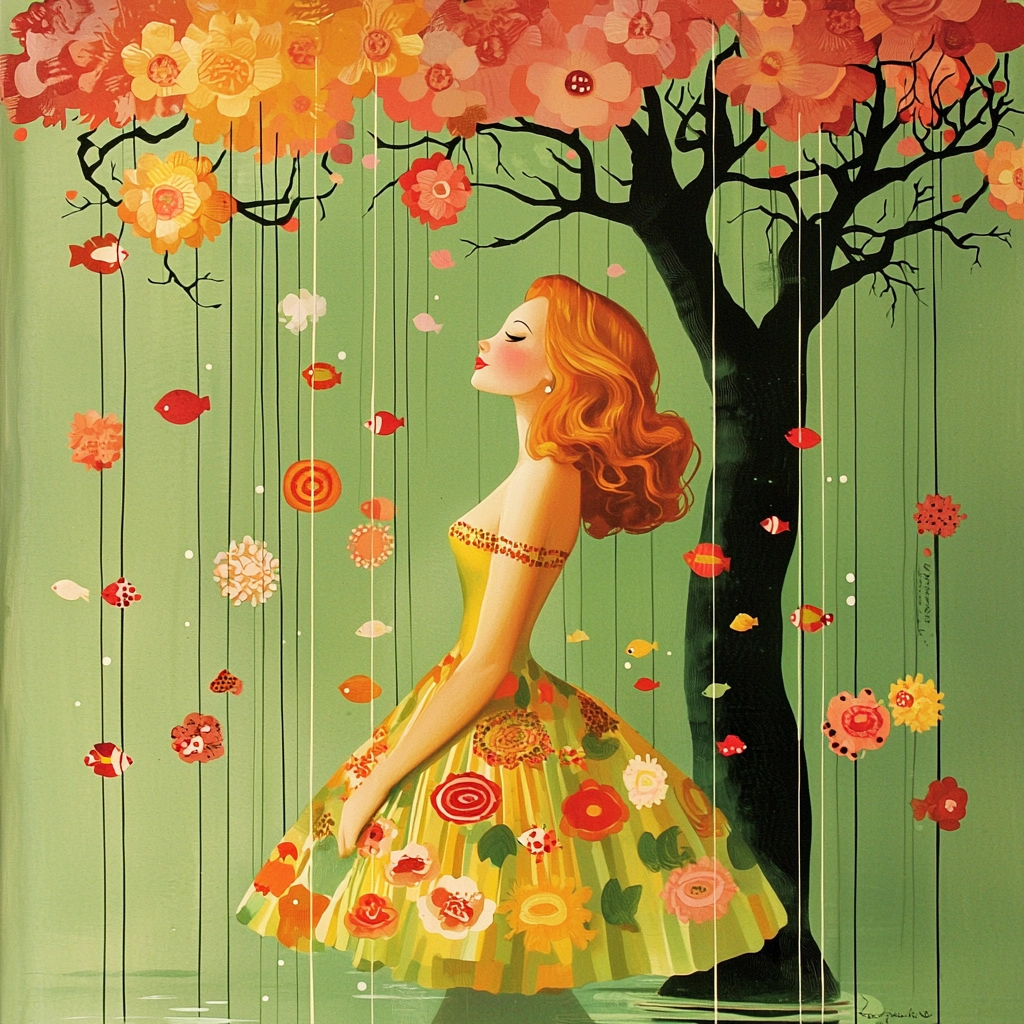 The artwork features clear lighting with defined shadows and highlights, emphasizing vivid warm colors that blend seamlessly. A sense of depth is created through layered textures, which add visual interest.