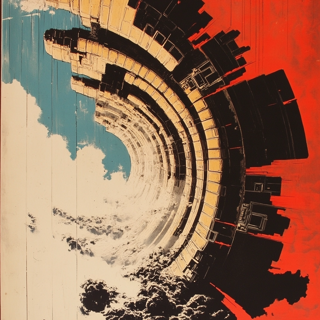 Vivid color contrasts with structured composition blend modern scenery and futuristic elements.