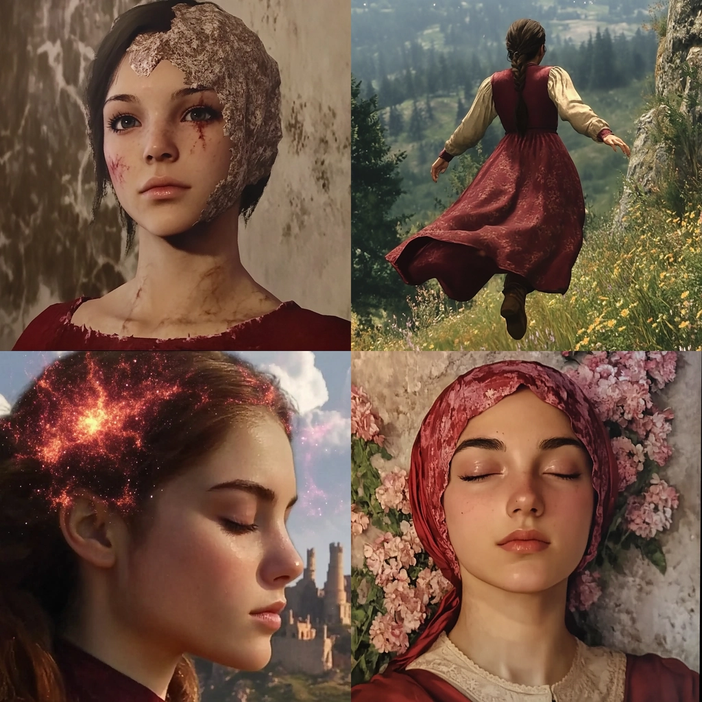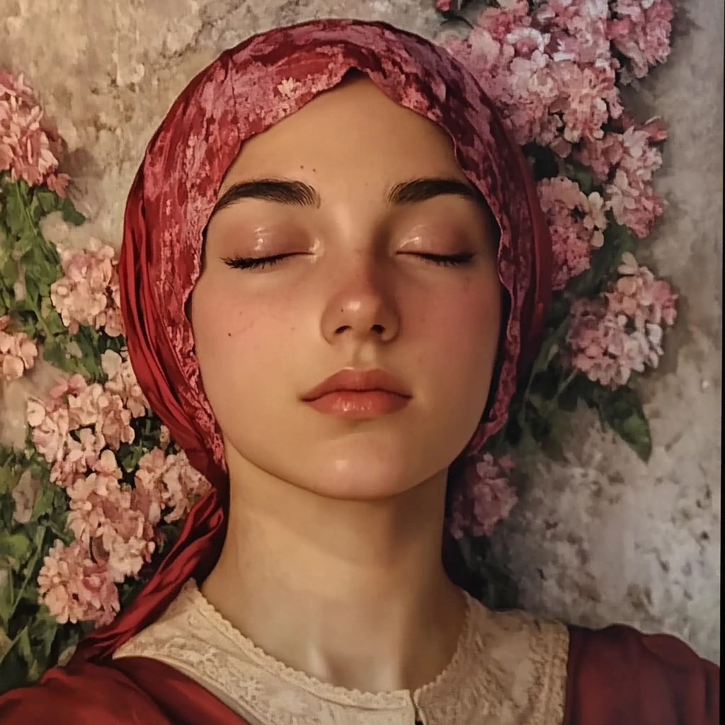 The lighting highlights textured fabrics, creating a contrast with the rustic background. Warm, earthy colors dominate, enhancing depth and richness across a natural setting.