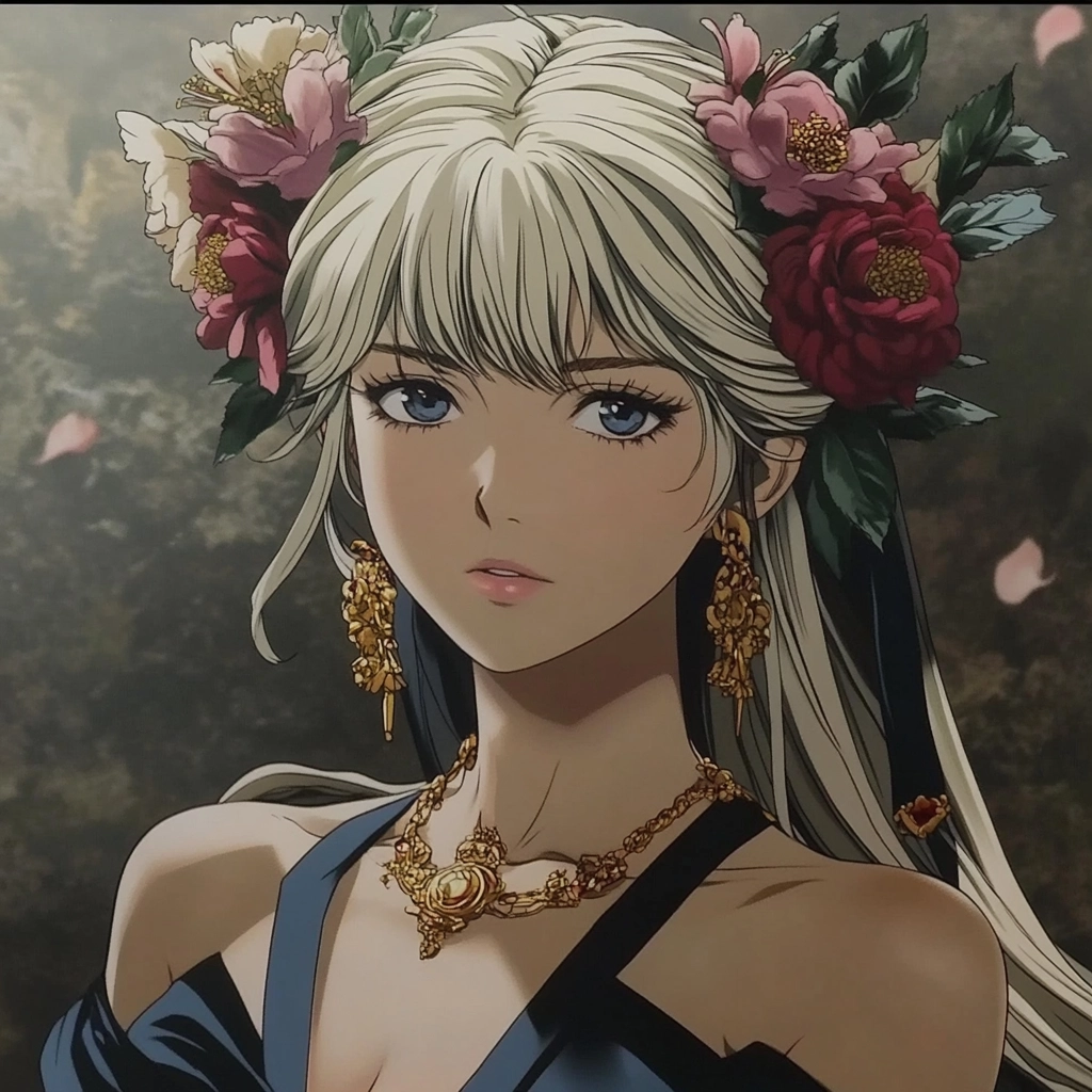 Rich textures and luminous hues create a regal impression.