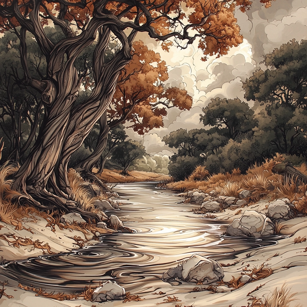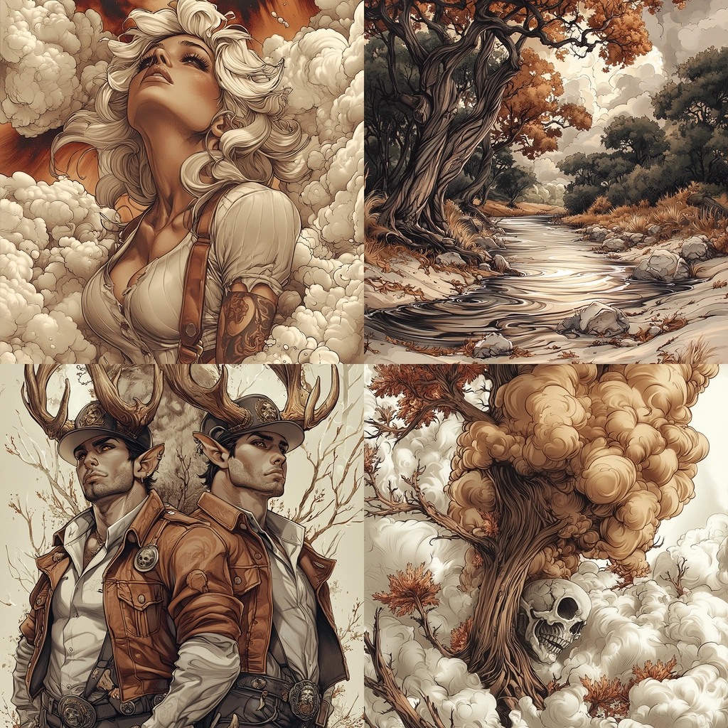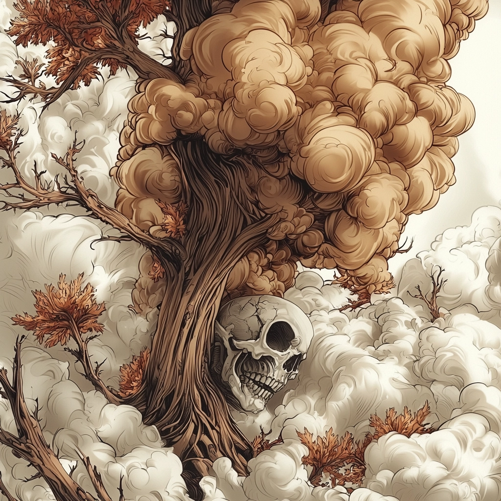 Richly rendered organic forms with warm earthy hues and intricate detailing.