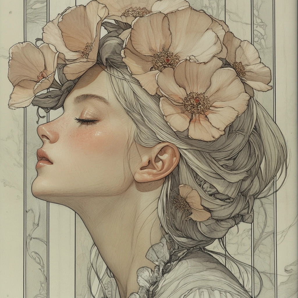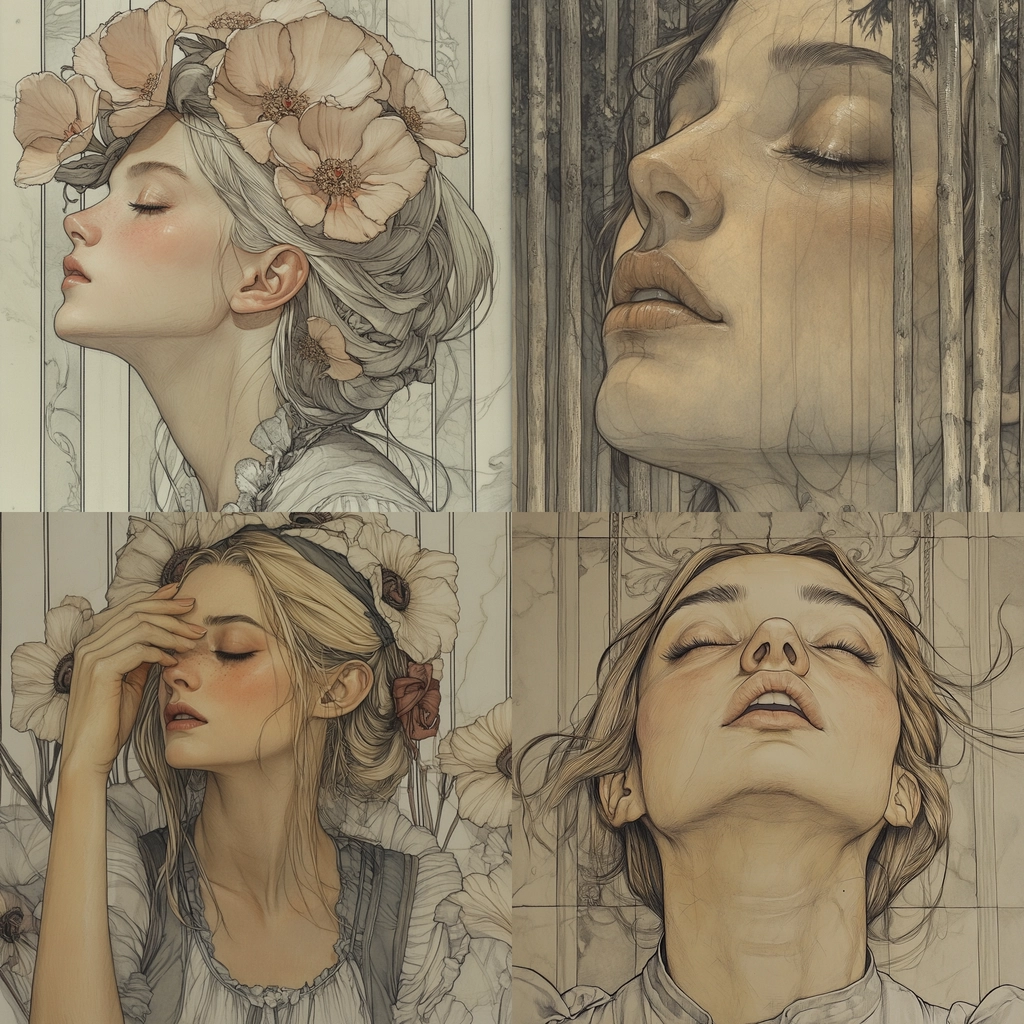 The use of sepia tones creates a harmonious blend of beige and brown that elegantly highlights the intricate linework. Subtle shading enhances the sense of depth, while the delicate textures evoke a calming atmosphere. The light and shadow interplay offers a classic aesthetic, grounded in gentle sophistication and understated elegance.