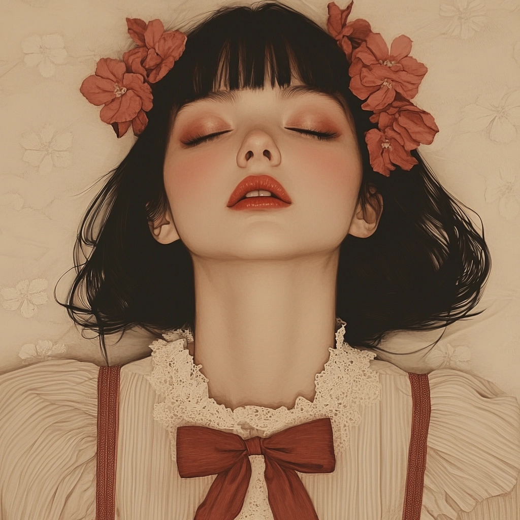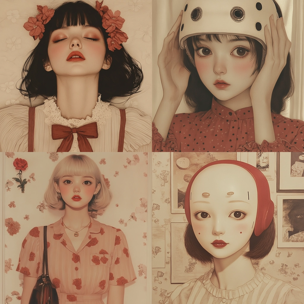The lighting is softened to create a warm glow, with colors blending smoothly to deliver a harmonious, cohesive feel. Space is delicately filled with gentle patterns and textures, adding to the historical and nostalgic character of each element.