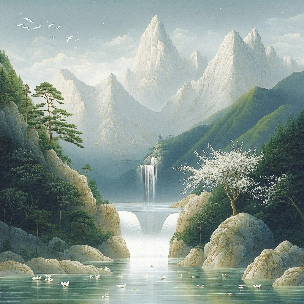 Delicate landscapes with soft lighting and fine details, creating a tranquil ambiance.