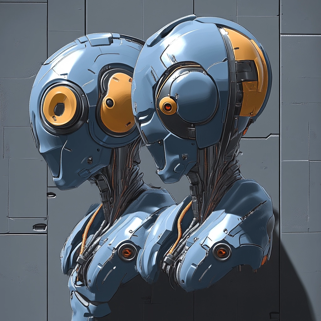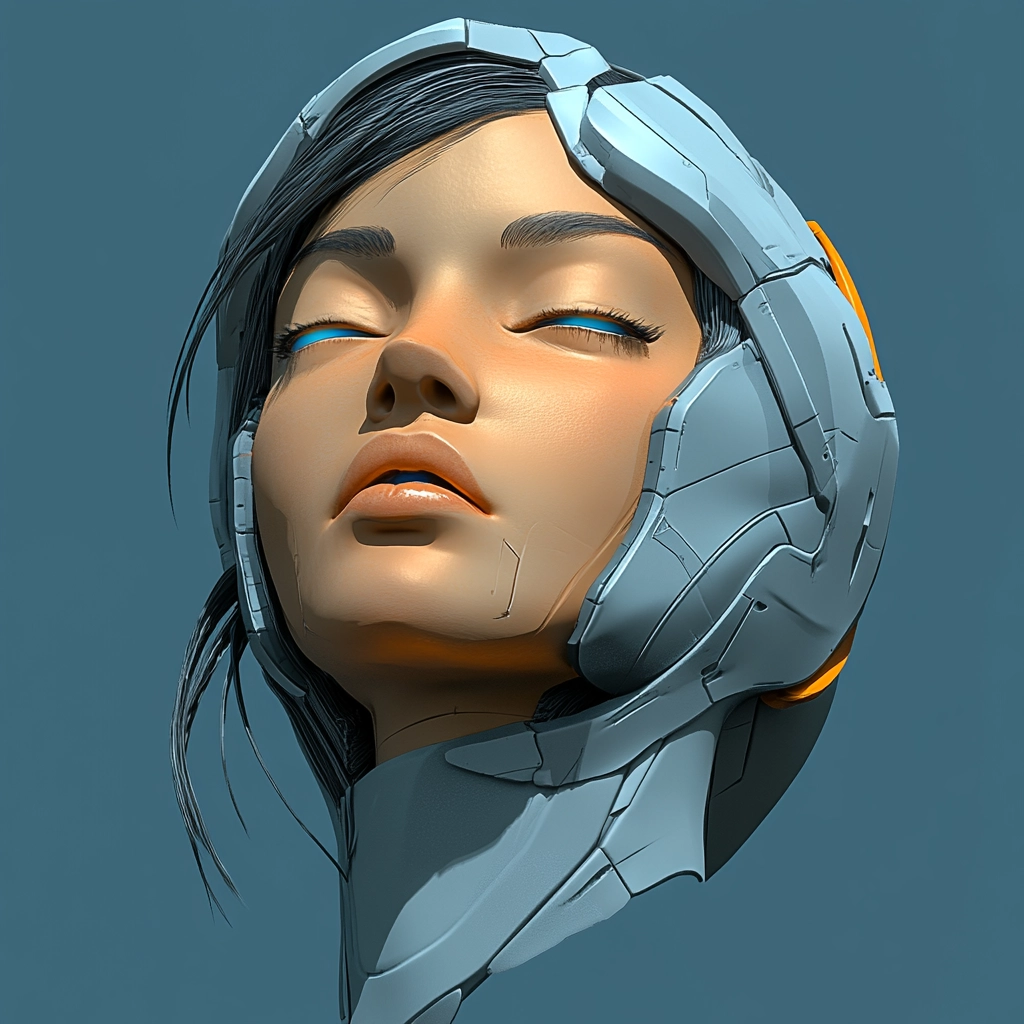 The sleek composition features smooth textures and vibrant contrasts with a dominant gray and orange color palette, encapsulating a modern technological essence.