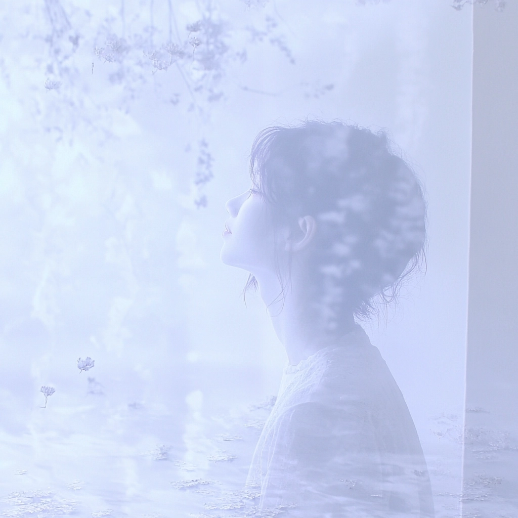The piece features gentle light blue tones creating a diffused, illuminated ambiance.