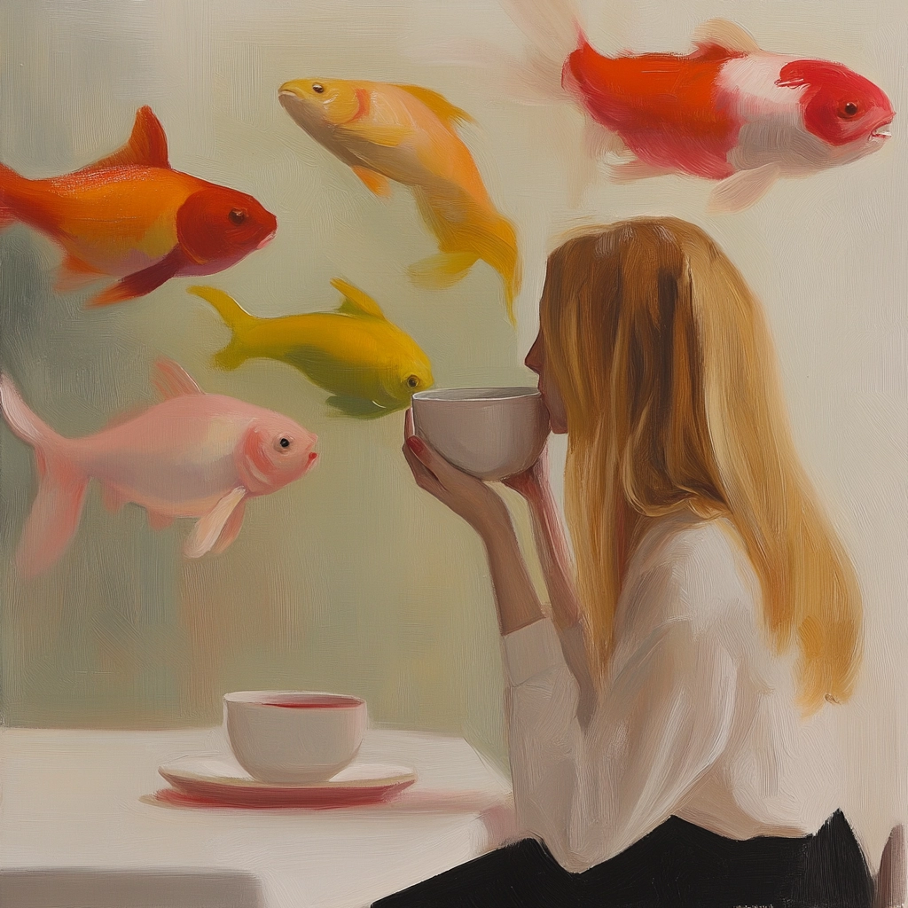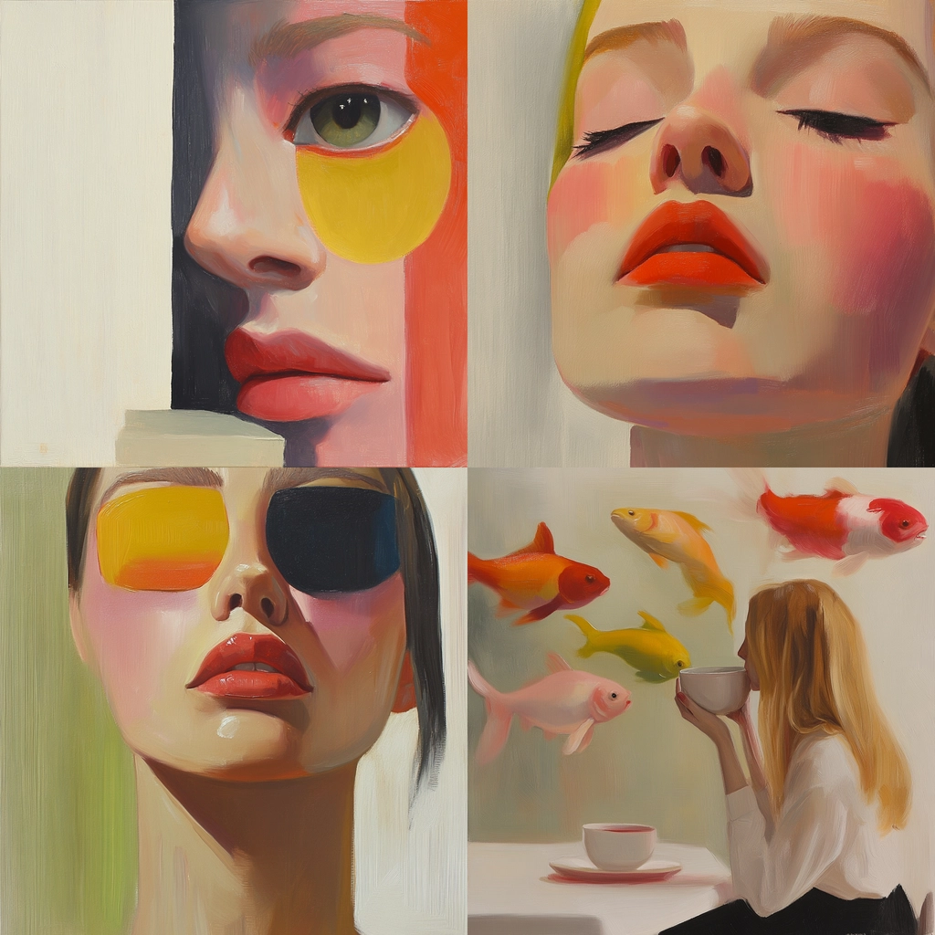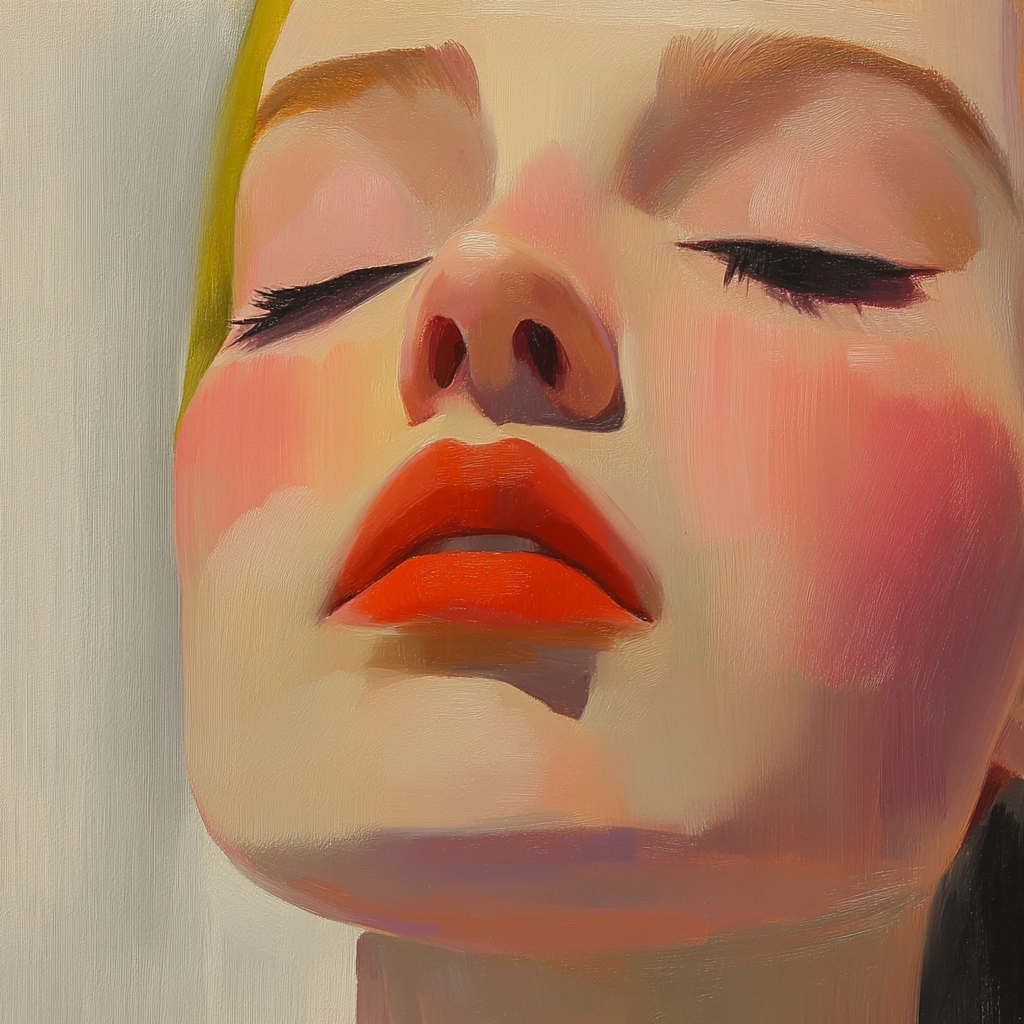 The deliberate use of soft lighting enhances the warm color palette, blending beige, red, and orange hues seamlessly. The spatial sense is obscured by deliberate blurring, conveying a fluid and layered texture throughout.