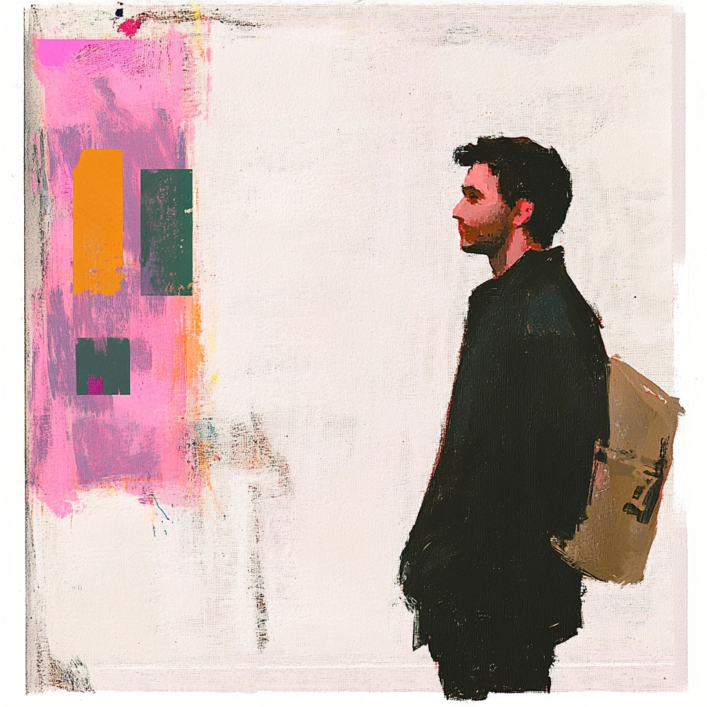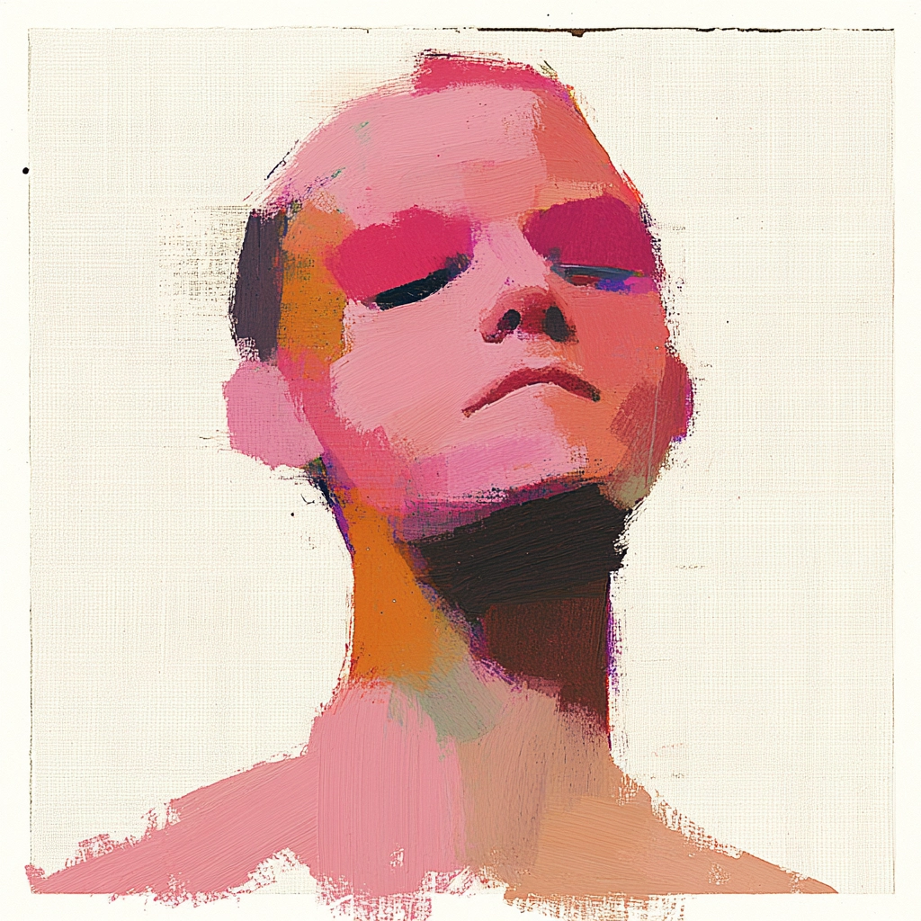 The lighting is subtle and diffuse, enhancing the soft transitions between colors. Brushstrokes are evident, emphasizing the texture and layers. Spatially, elements are often centralized and isolated, giving a sense of individual focus and introspection.