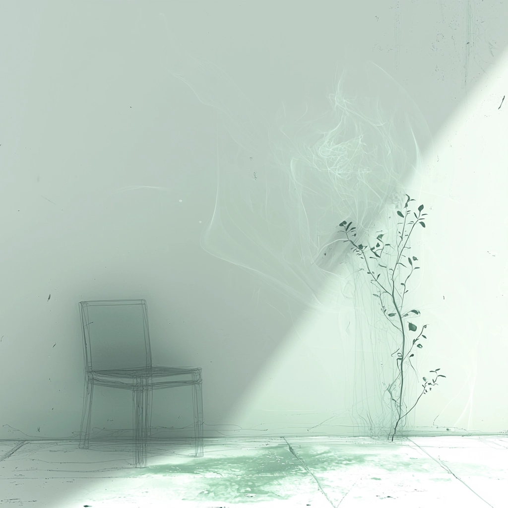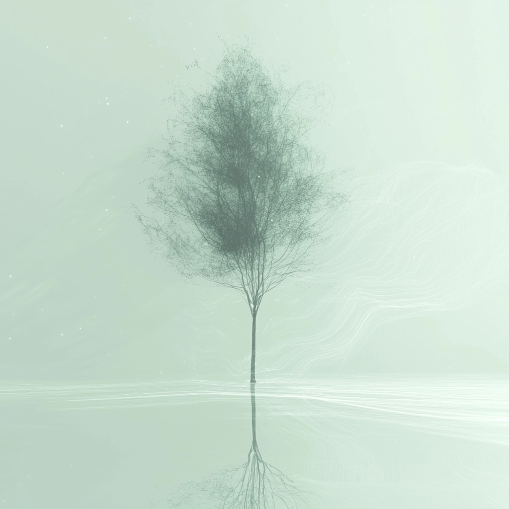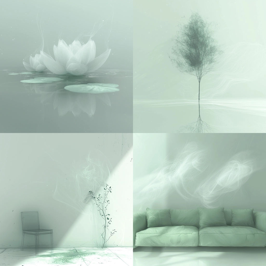 Gentle lighting effects create a soft contrast between the cyan hues and dark shadows. The light streaming across the scene accentuates minimal textures present, giving a smooth appearance. Depth perception remains fluid, avoiding sharp boundaries.