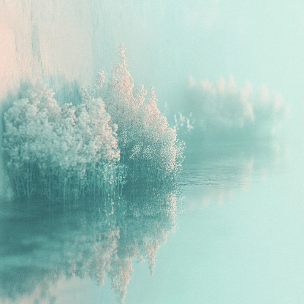 The lighting is diffused and gentle, casting a soft glow across the scene. Cyan is the dominant color, creating a tranquil visual experience, while beige adds a slight warmth to the palette. The texture is smooth and consistent, with minimal contrast creating a seamless blend. The spatial sense is subtle, with elements receding gracefully into the background.