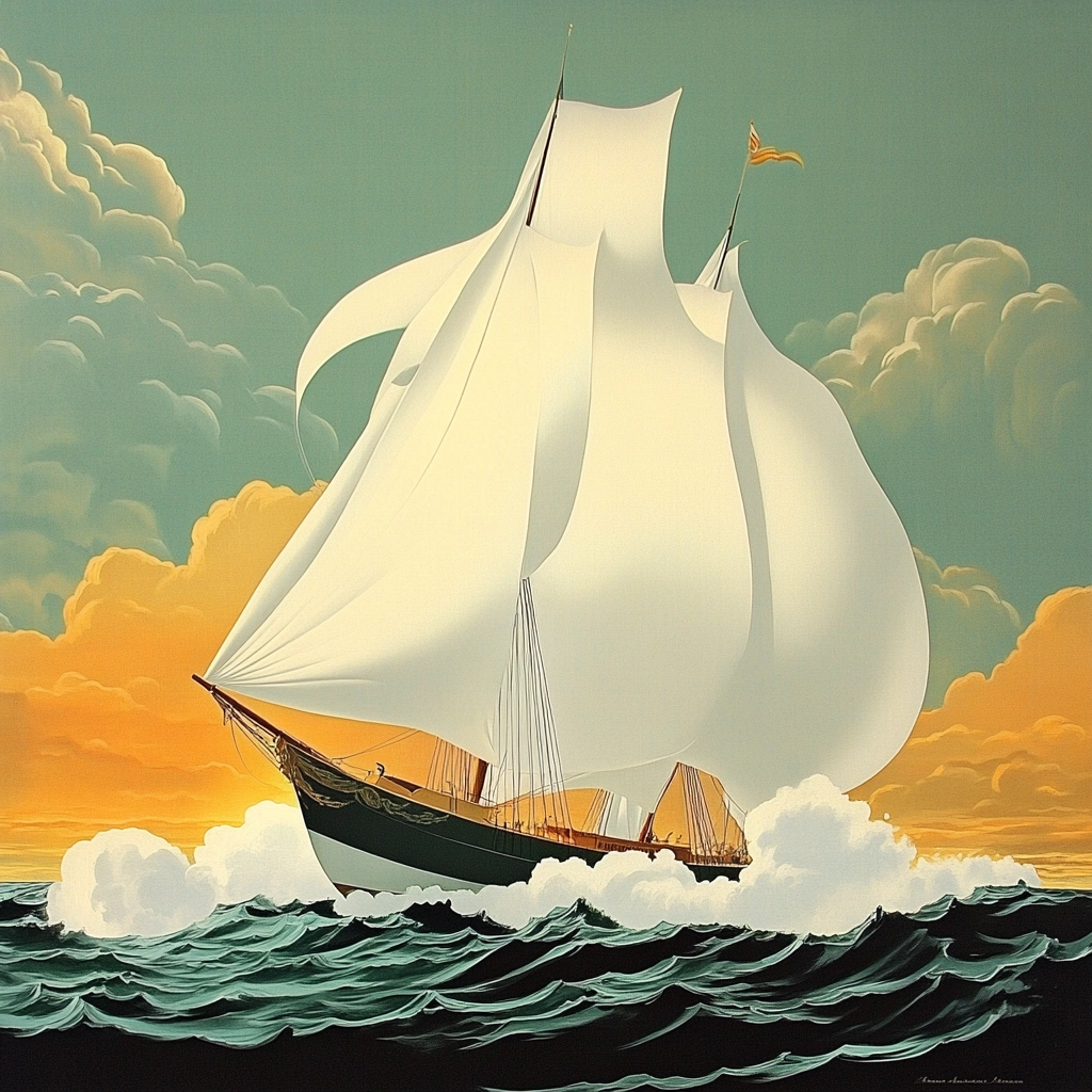 The lighting gives a luminous effect that highlights edges, while the colors transition smoothly between rich green, serene blue, and vibrant orange. The texture is sleek and enhances a sense of gentle, undulating movement across space.