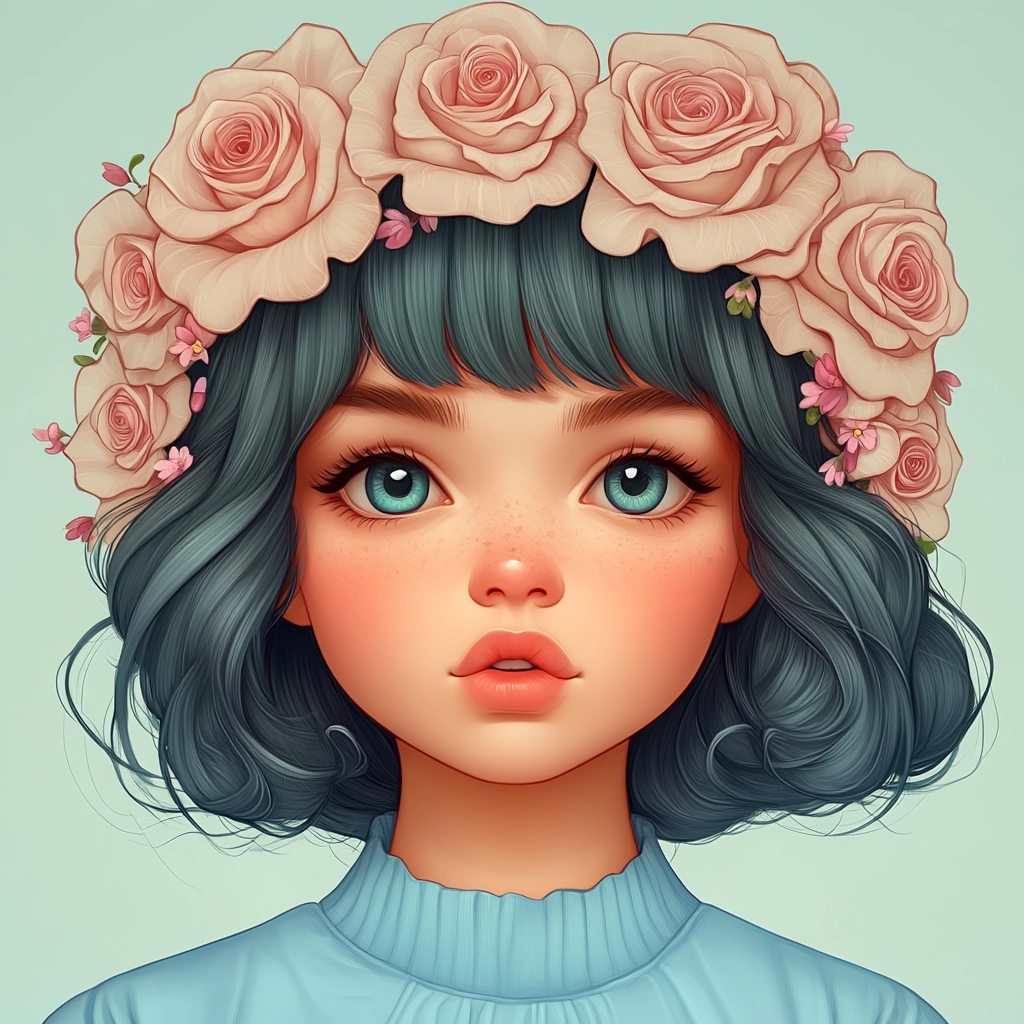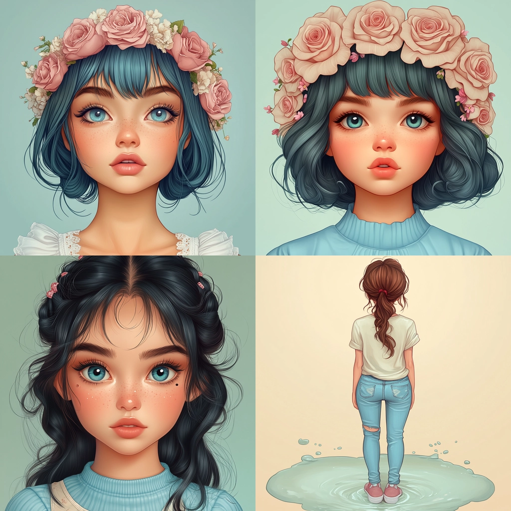 The artwork employs soft lighting with muted pastel colors offering a serene palette. Textures are smooth and subtly detailed, creating a gentle feel that emphasizes softness and lightness. The spatial arrangement is thoughtfully designed to maintain a harmonious visual flow.