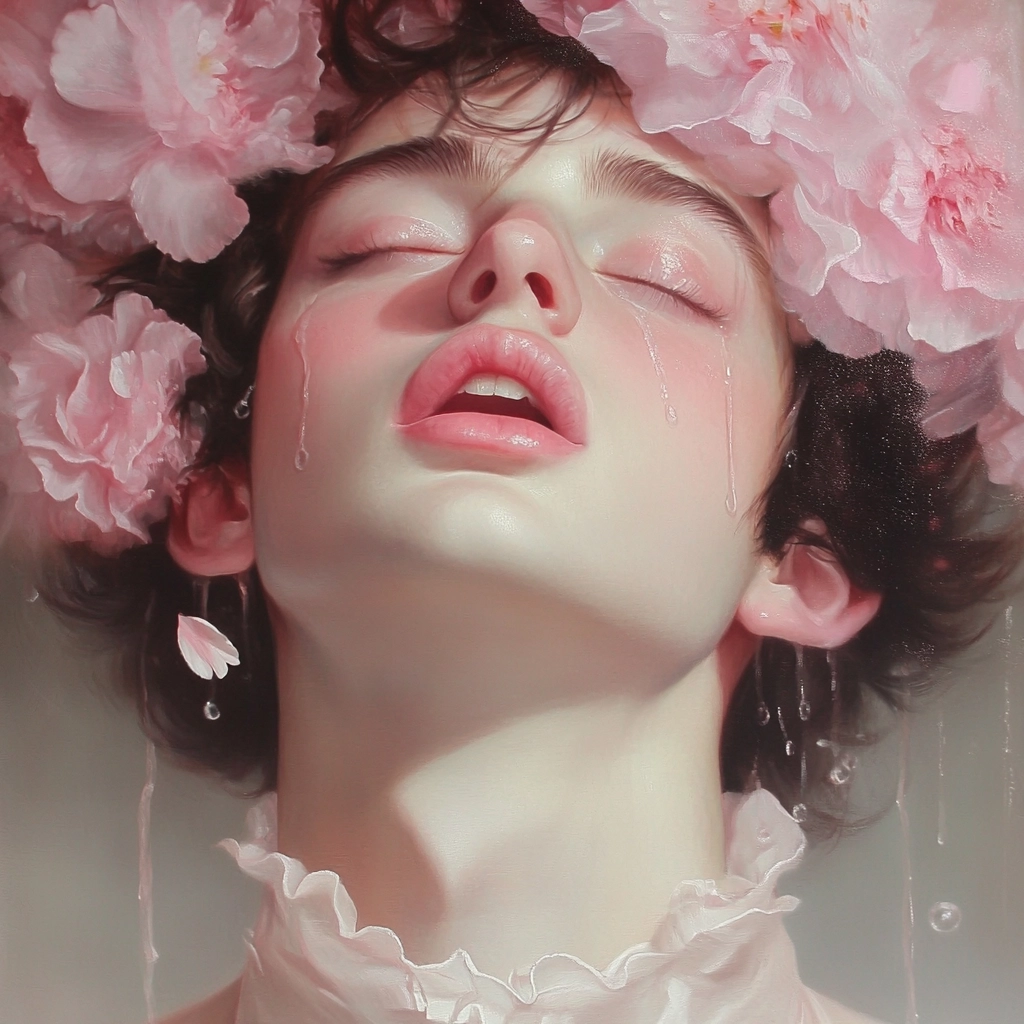 Bright pink tones and delicate whites create a soft, saturated effect.