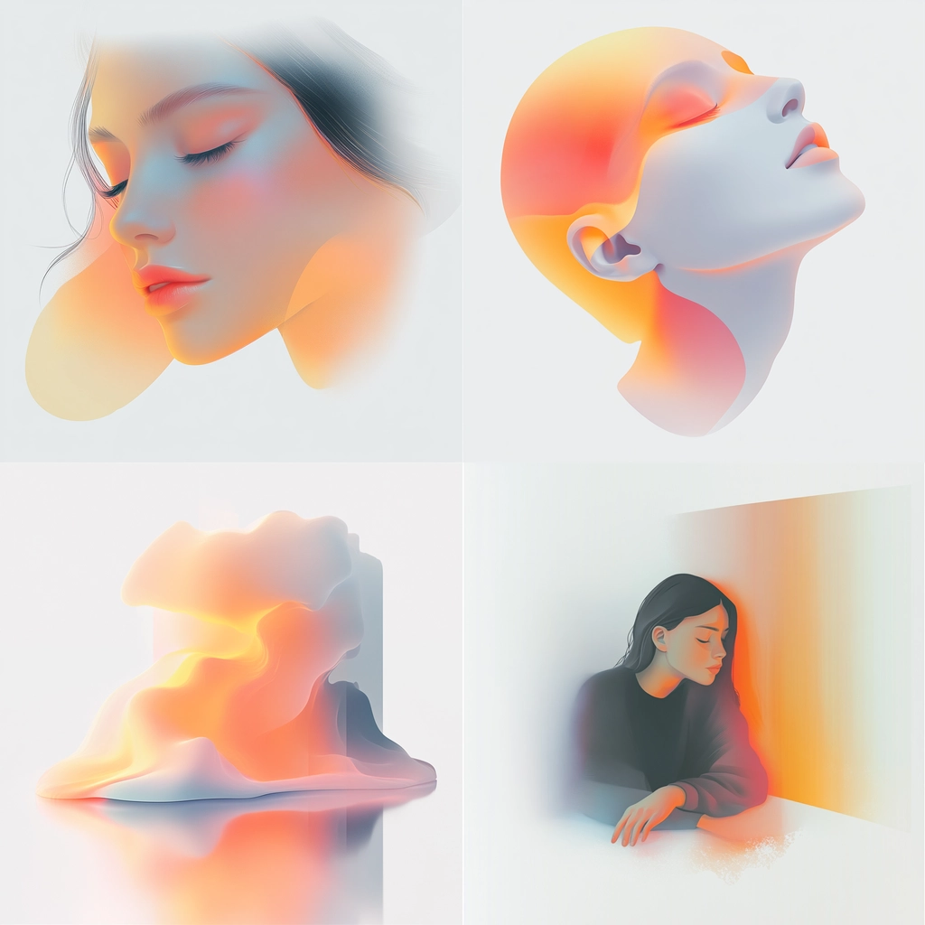 Delicate gradients transition smoothly across surfaces, enhanced by ambient lighting that softens edges while emphasizing curved forms. The integration of light and shadow creates spatial depth, with gentle texture variations providing subtle visual contrast.