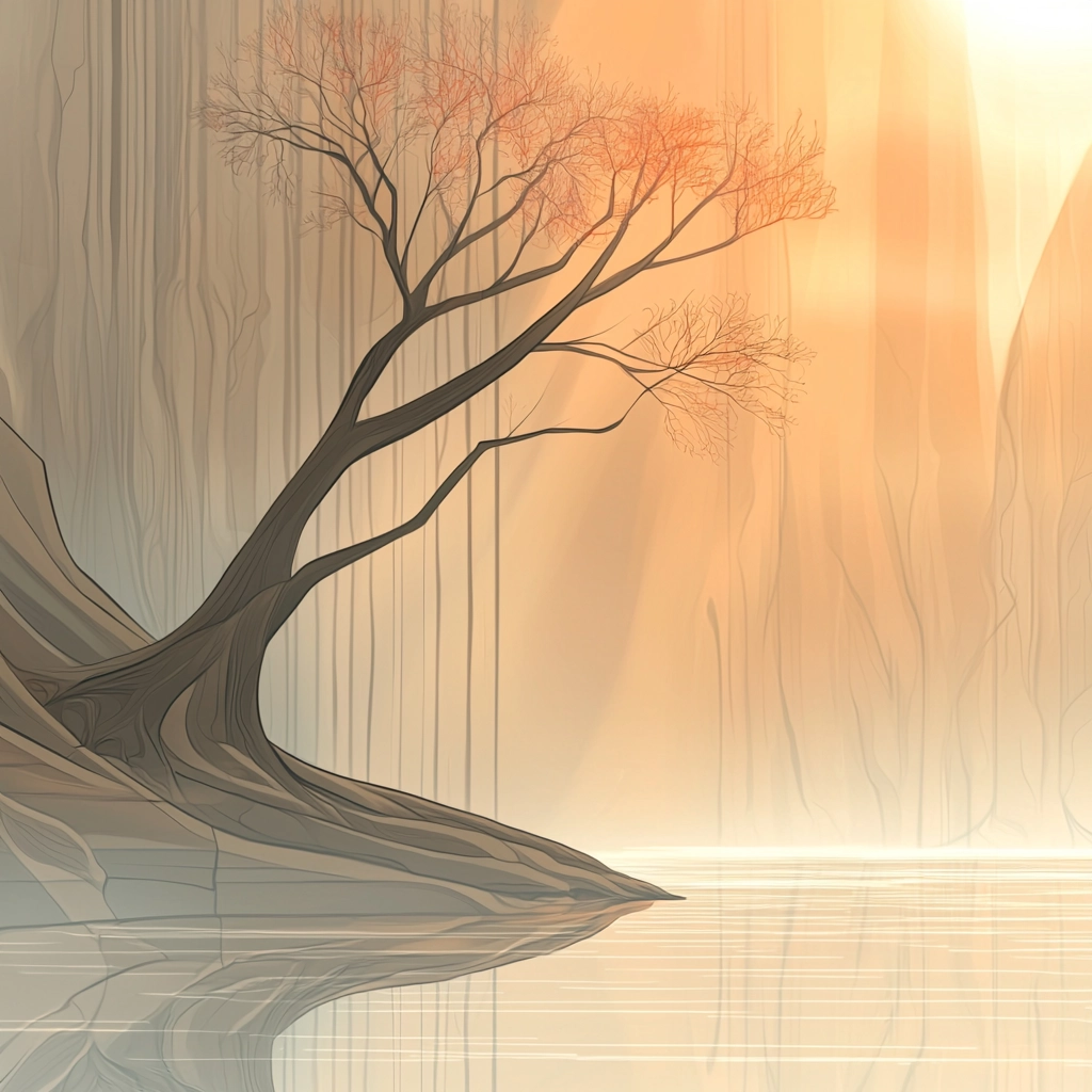 Delicate gradients interplay with warm lighting and muted tones.