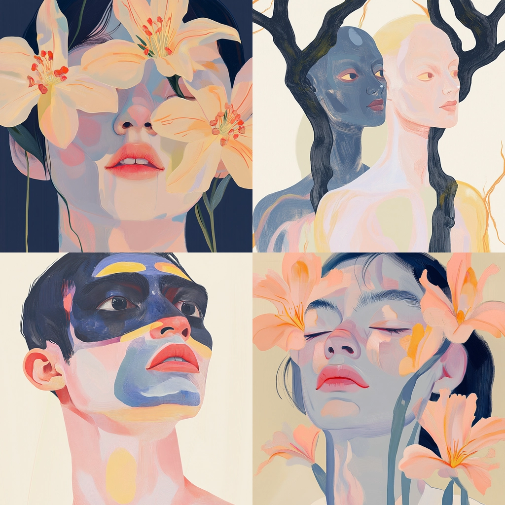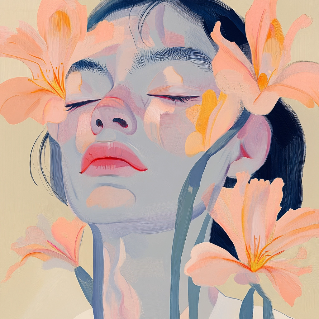 Smooth lighting effects enhance the natural, flowing shapes with a delicate interplay between light and shadow. Colors blend seamlessly, creating a subdued yet harmonious palette. Subtle texture variations add depth without overpowering the composition.