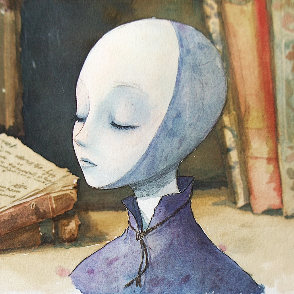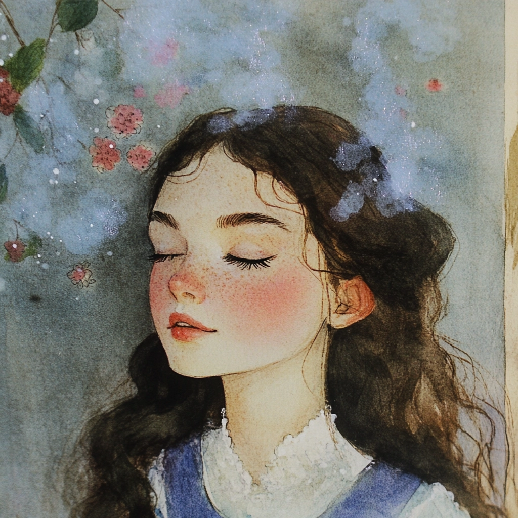 Delicate blending of cool hues with subtle contrasts and fine details.