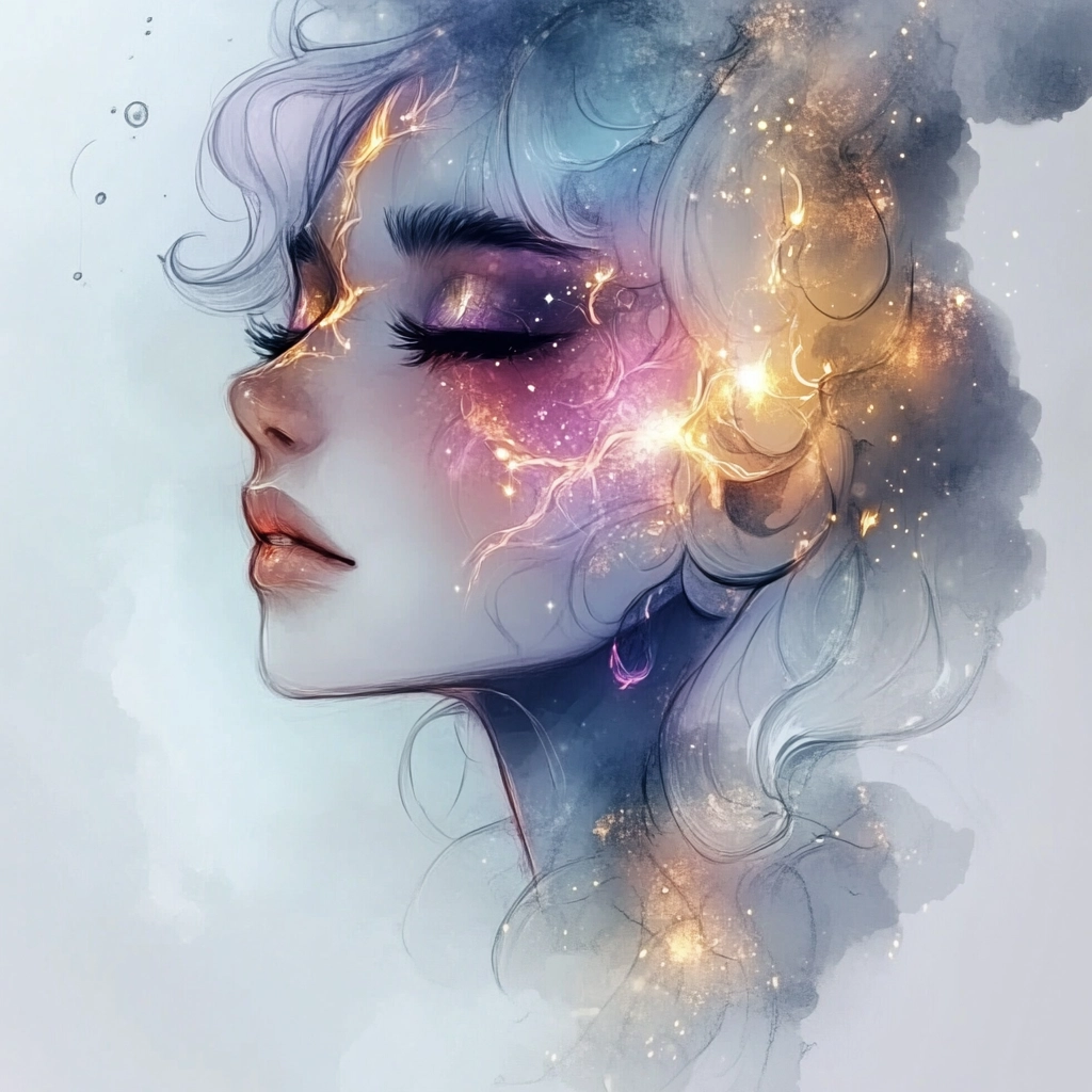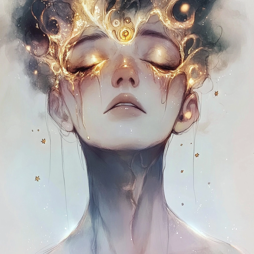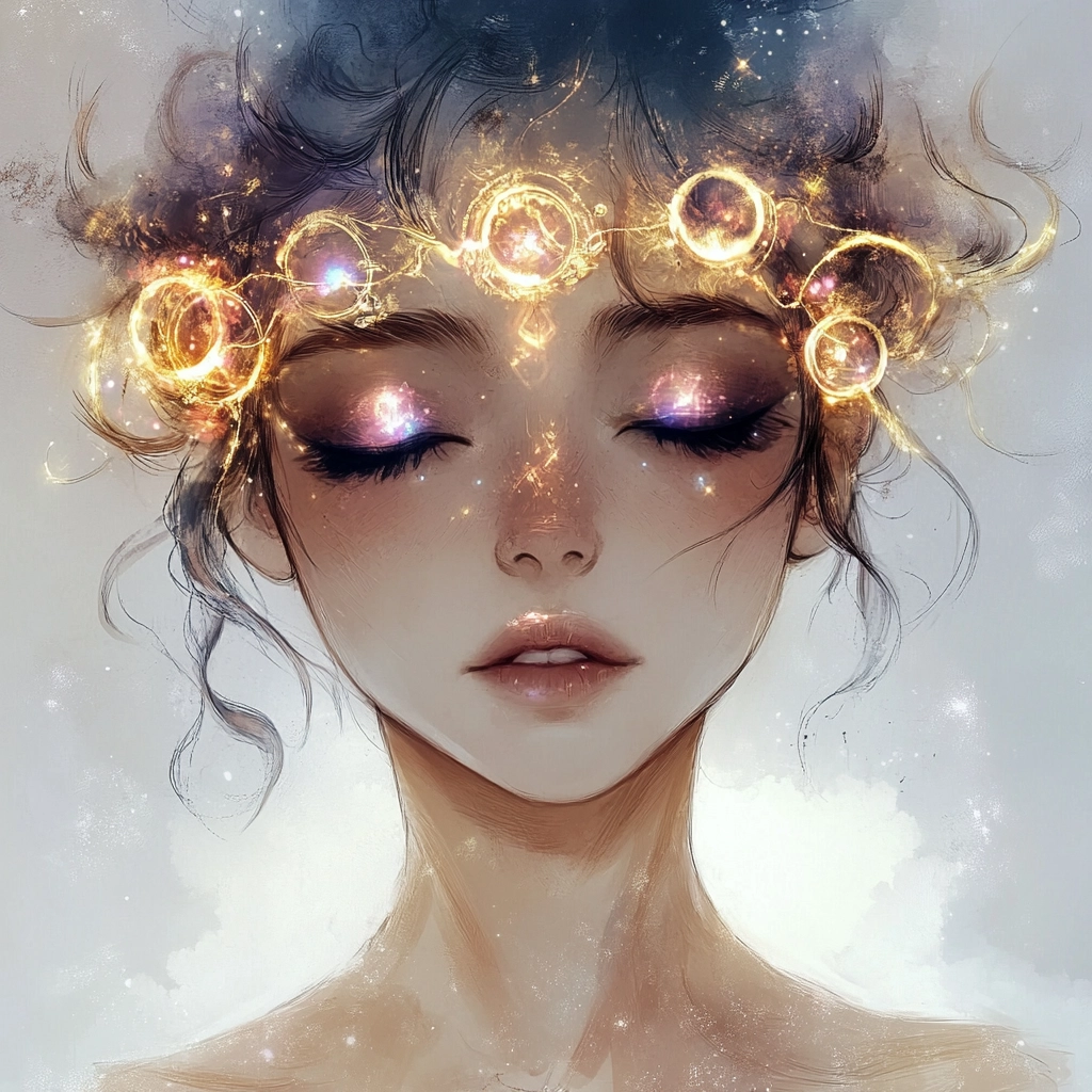 The presentation combines gentle diffuse lighting with a soft color palette, leading to a harmonized visual appearance. Gold accents create focal points amidst a blue and beige backdrop, adding depth and dimensionality.