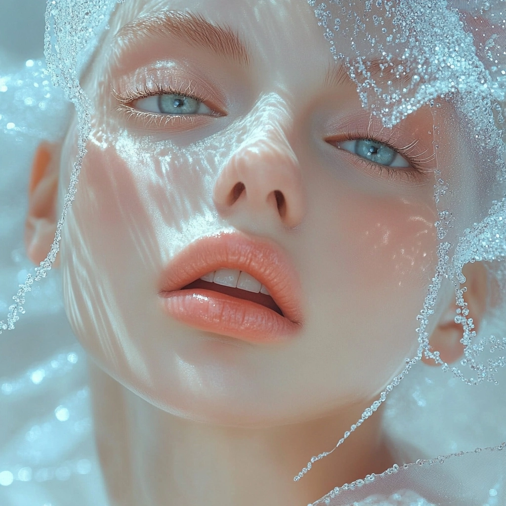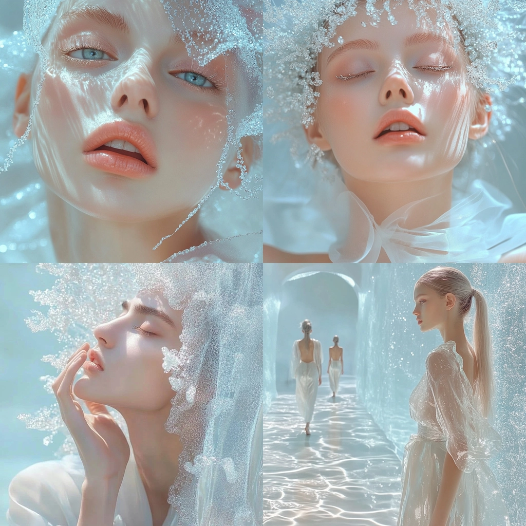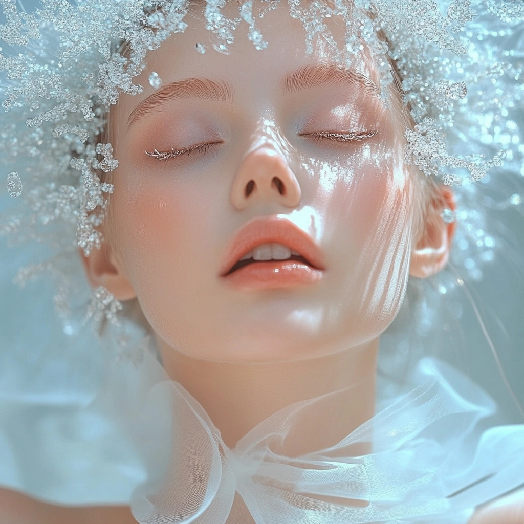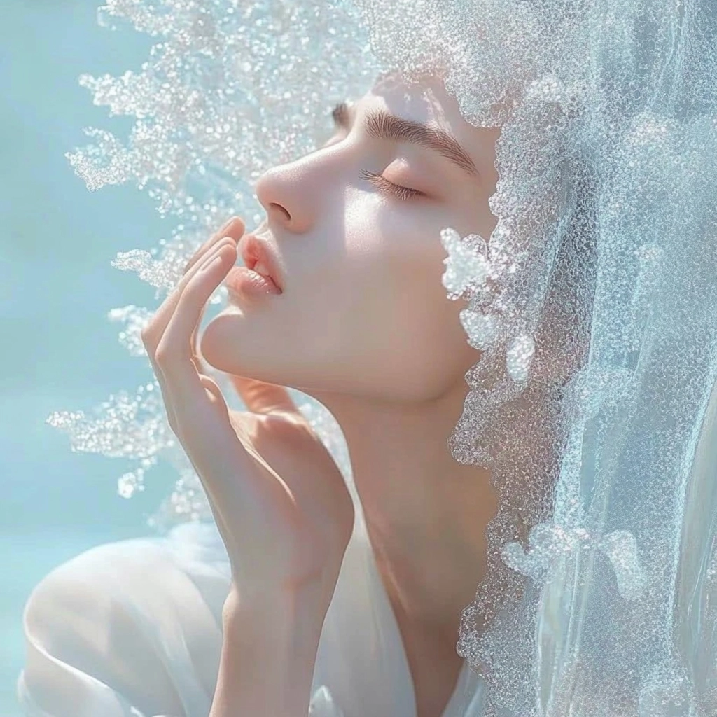 A delicate interplay of soft lighting and cool tones creates a serene and luminous atmosphere.