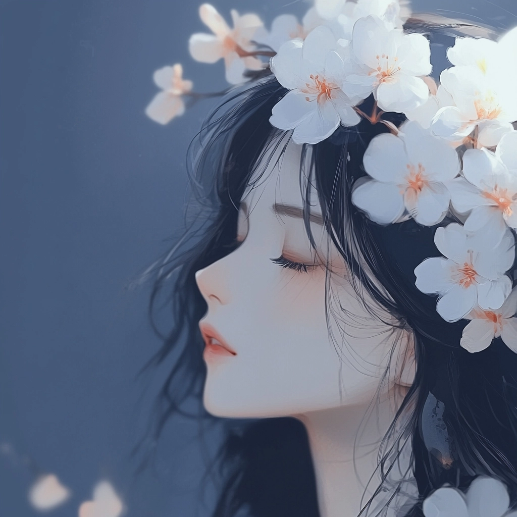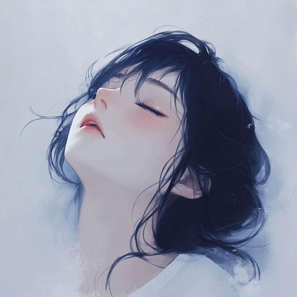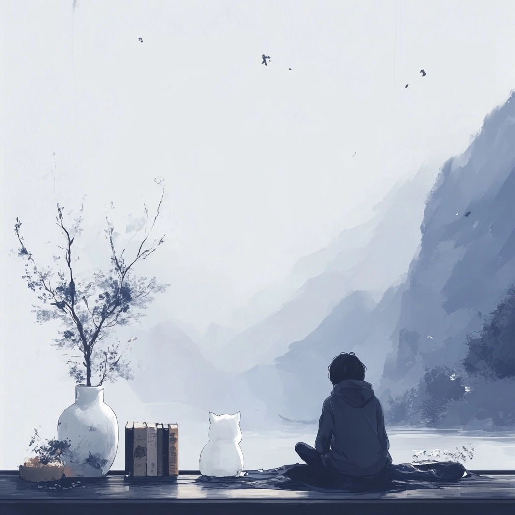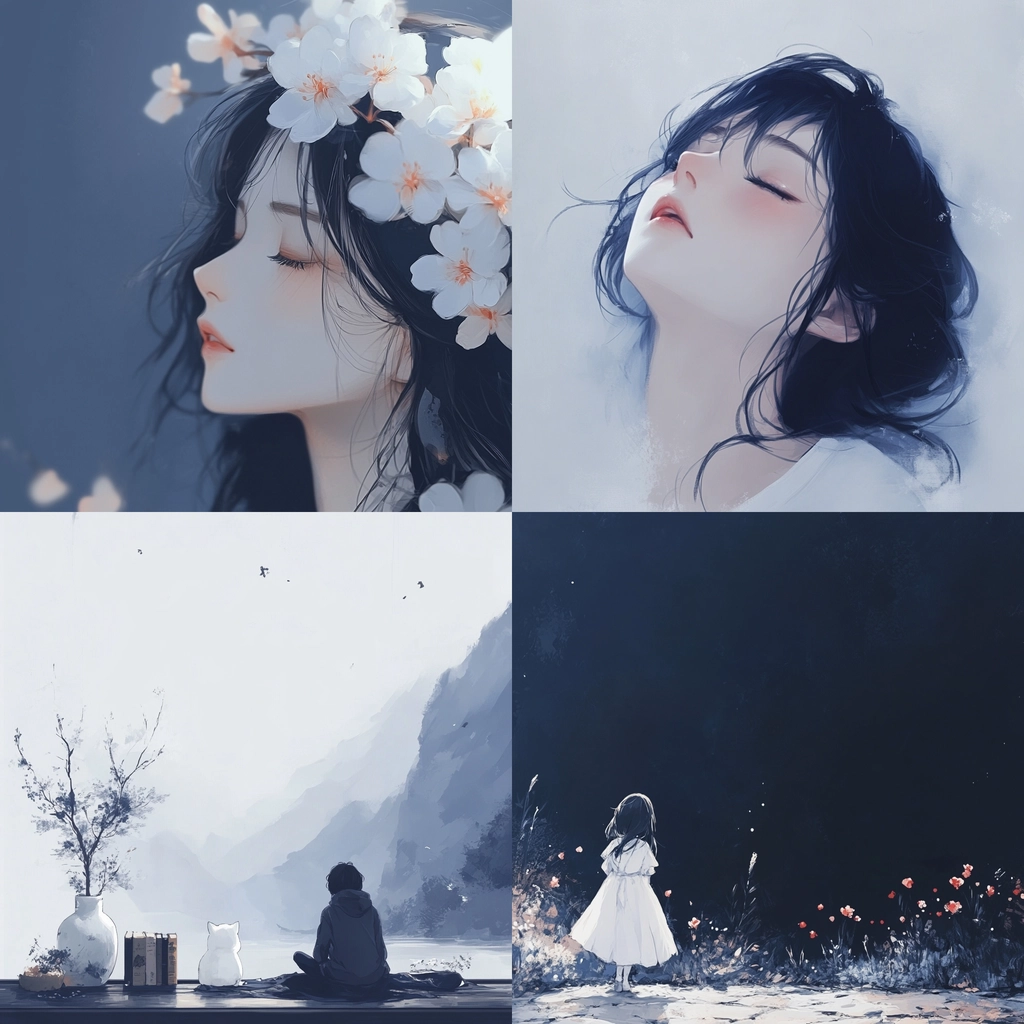 Delicate lighting illuminates prominently, casting soft shadows that create a calm ambiance. The predominant use of blue and white establishes tranquility. Brushstrokes create a textured but smooth finish, enhancing a sense of depth.