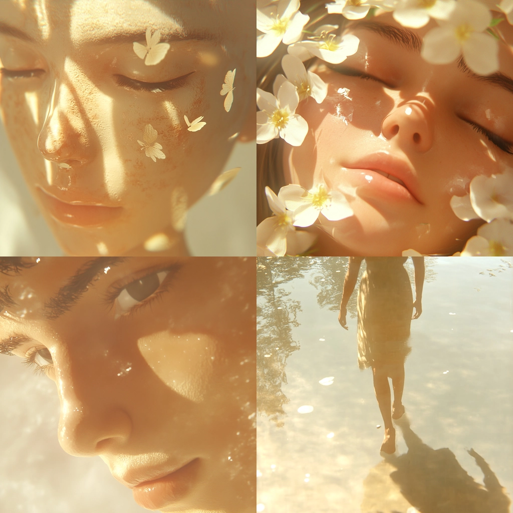 A gentle interplay of light and shadow with dominant pastel hues.