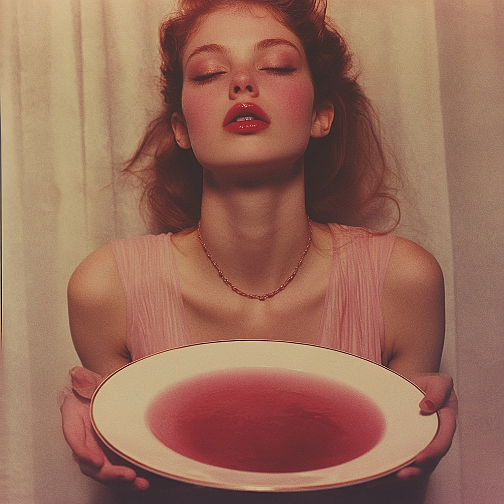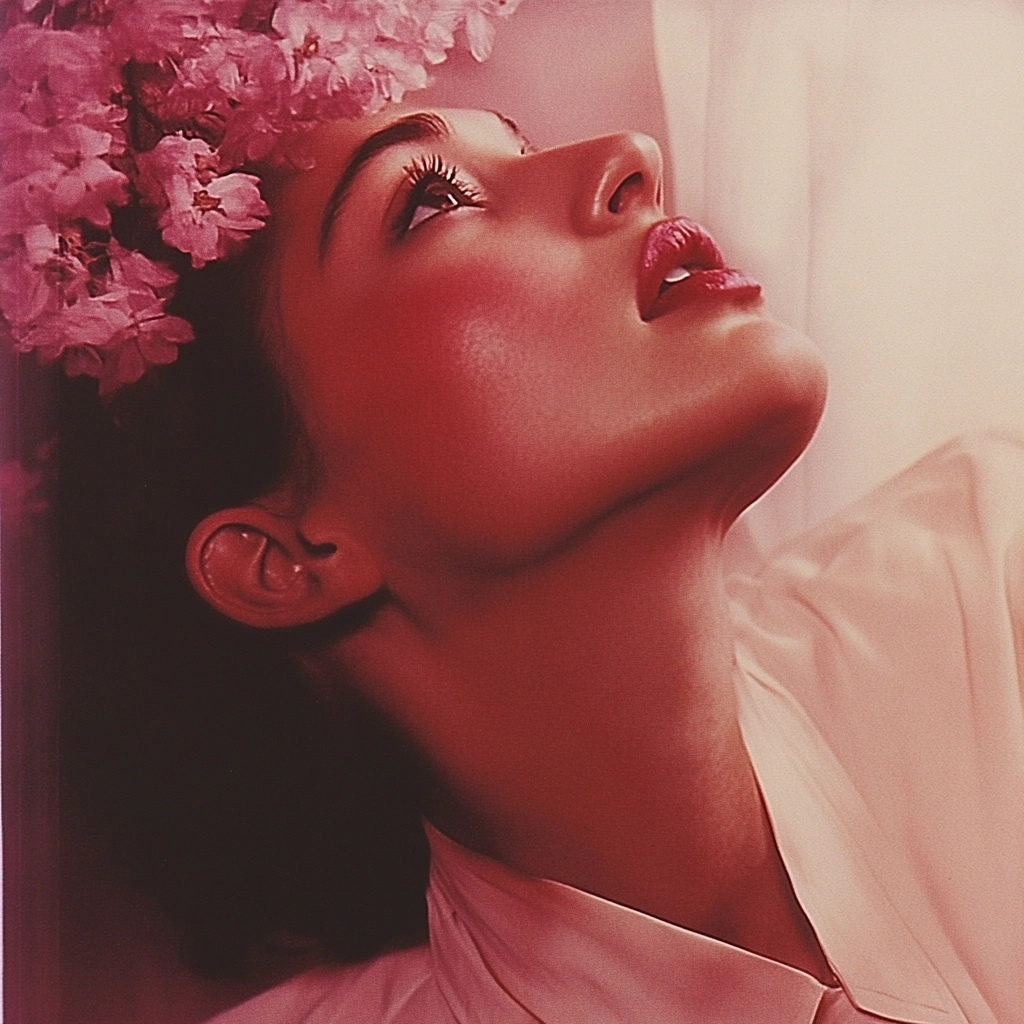 A harmonious blend of soft pink and warm tones create a nostalgic tension.