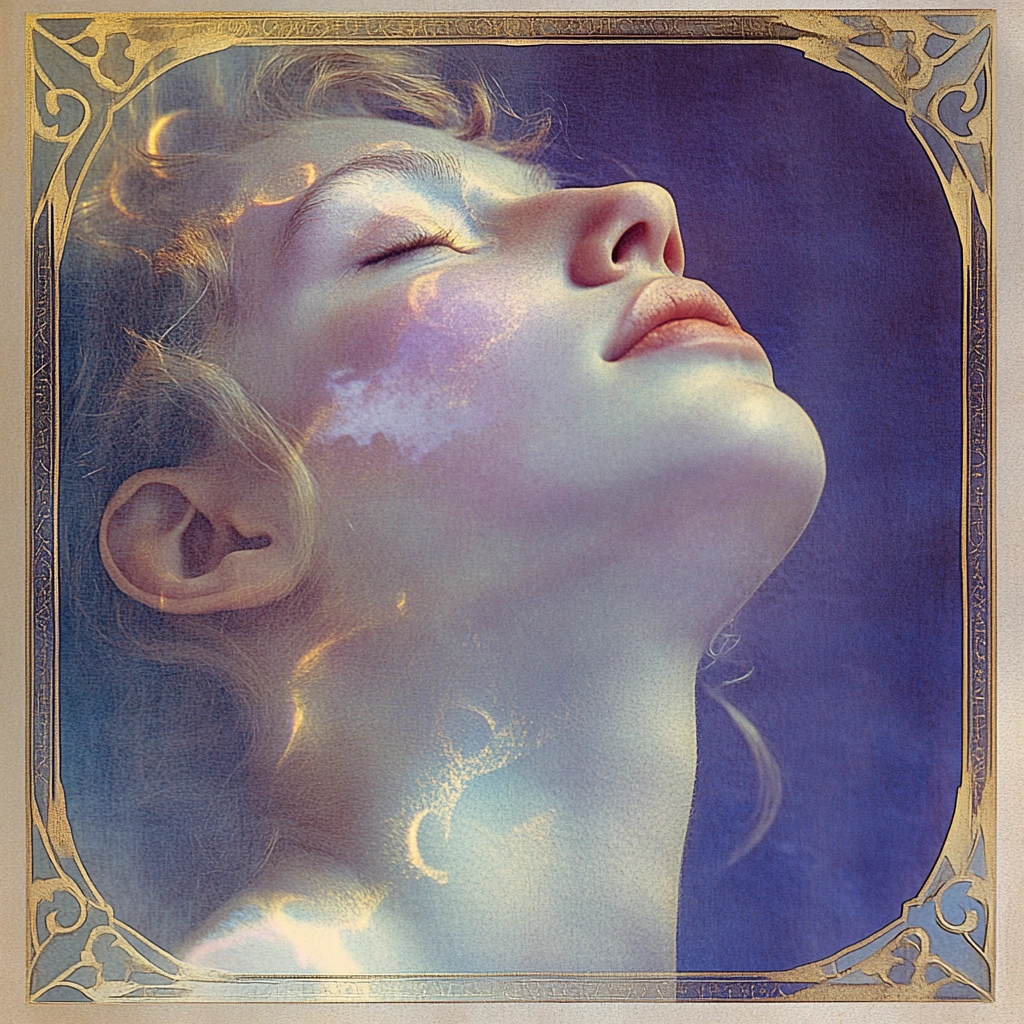 Delicate pastel tones meld with warm gold framing, balanced by softly modulated lighting and subtle texture, creating refined spatial depth and gentle light diffusion.