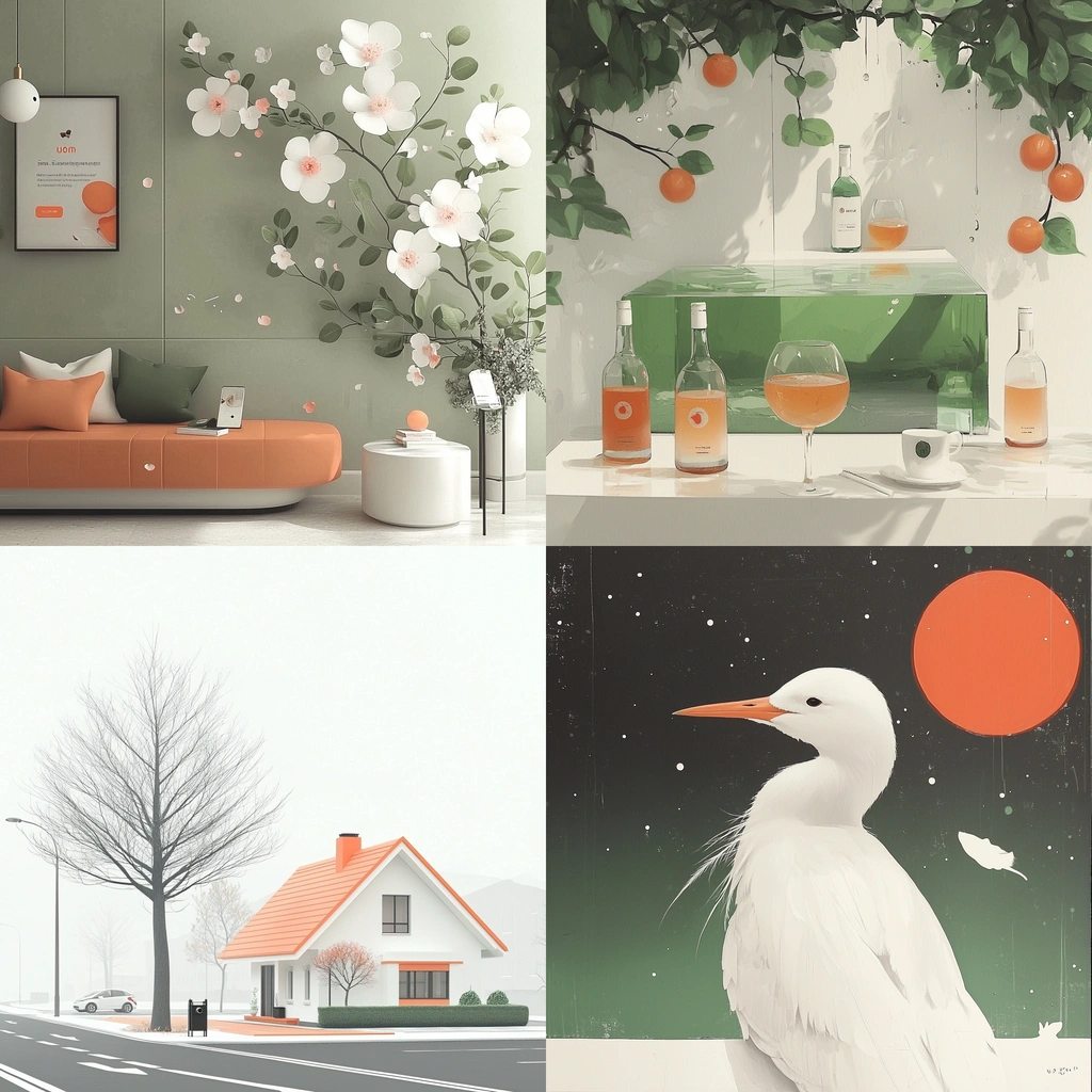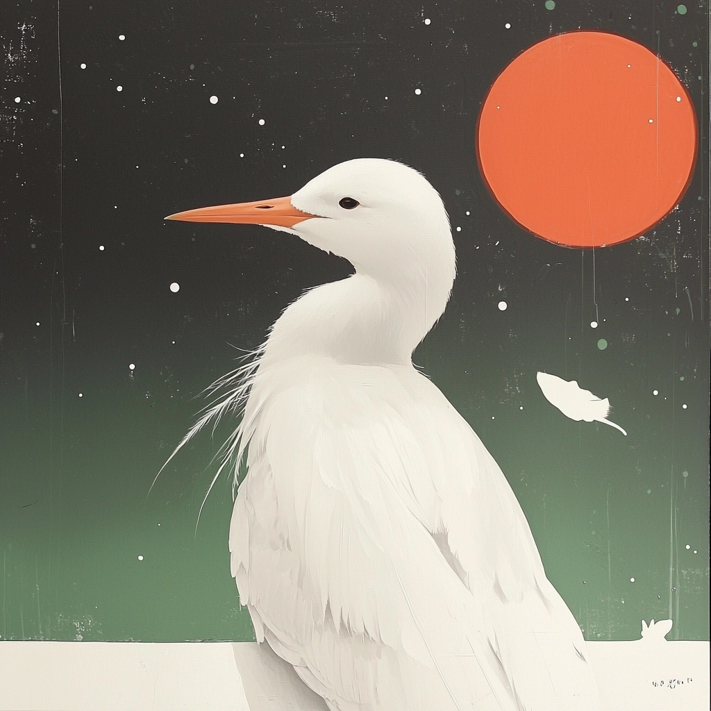Balanced composition with soft pastel shading accentuated by distinct orange highlights.
