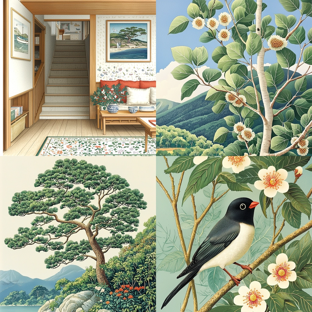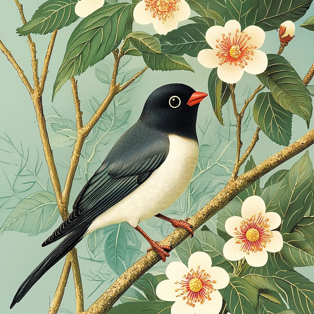 The lighting is soft yet sharp, accentuating the precision in line work. Colors are vivid but balanced, lending a natural depth without overwhelming the senses. The texture is smooth, creating a harmonious unity between the elements depicted.