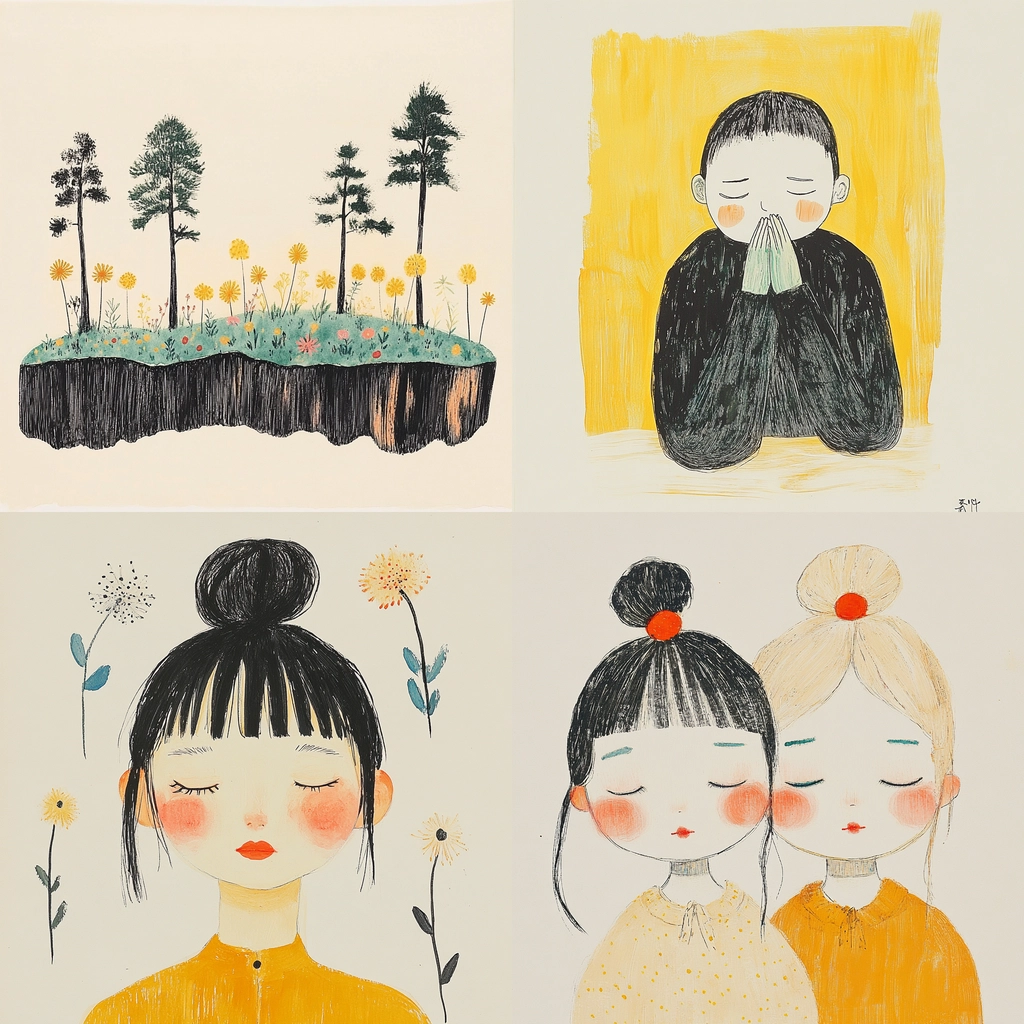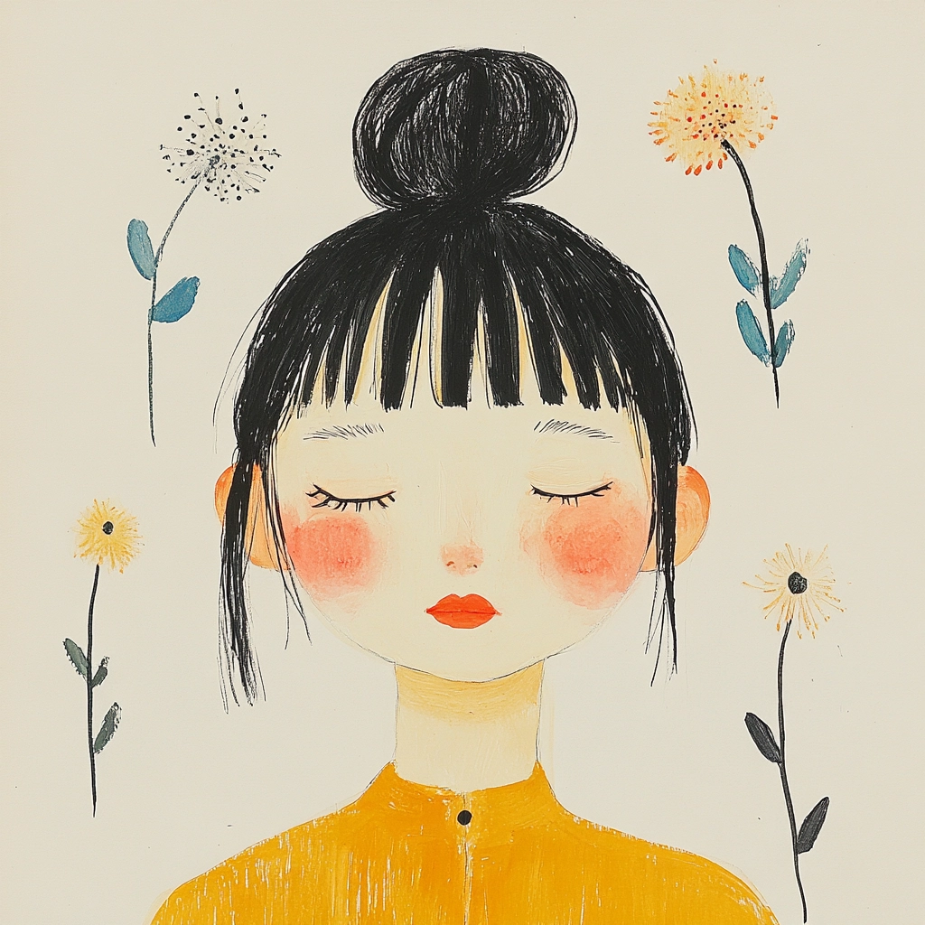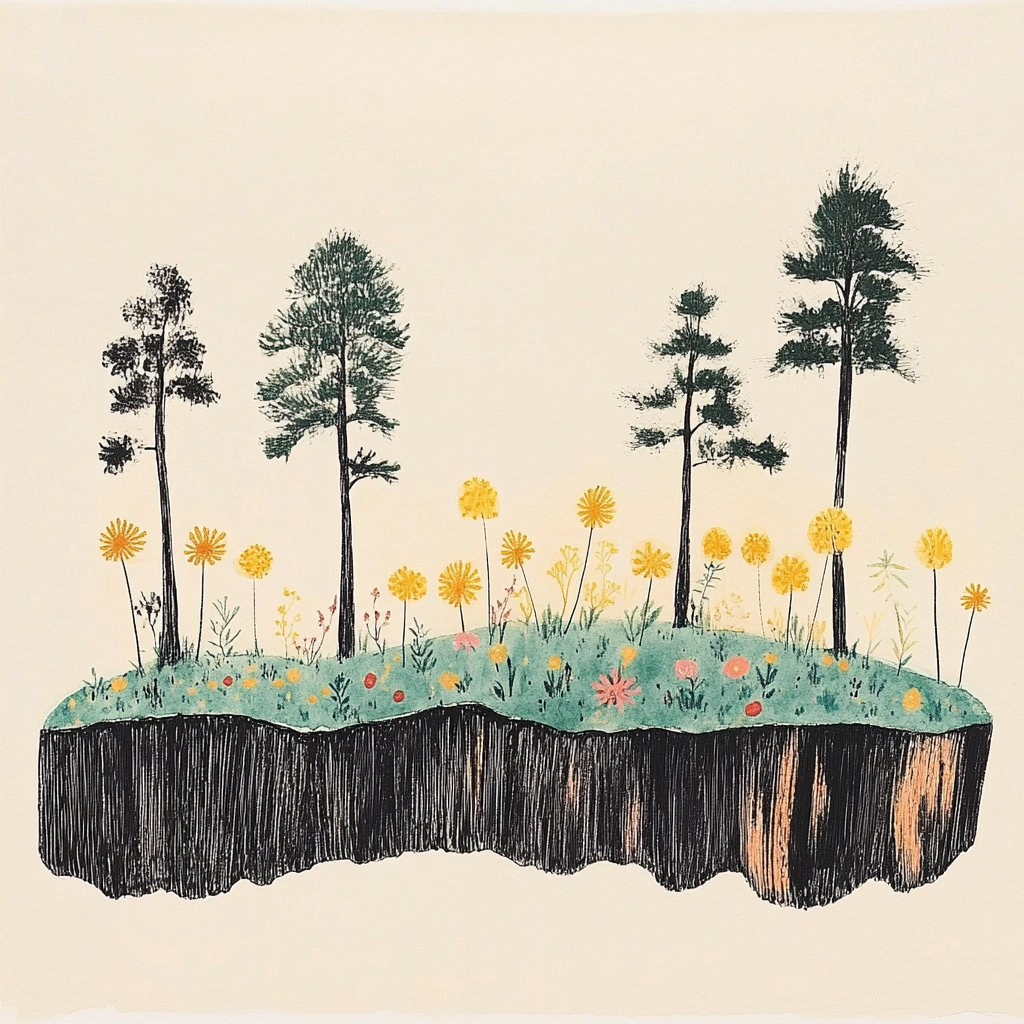 A delicate interplay between soft hues and bold outlines creates a simplistic yet visually engaging composition.