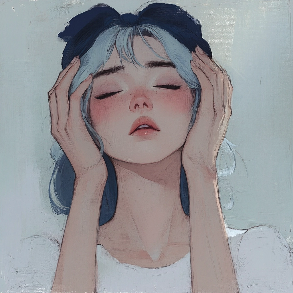 The lighting is diffused, creating a soft, ethereal glow. Pastel colors are predominant, lending a gentle, calming presence. The spatial sense is intimate, with a close focus on textures that appear smooth and soft, enhancing the aesthetic harmony.