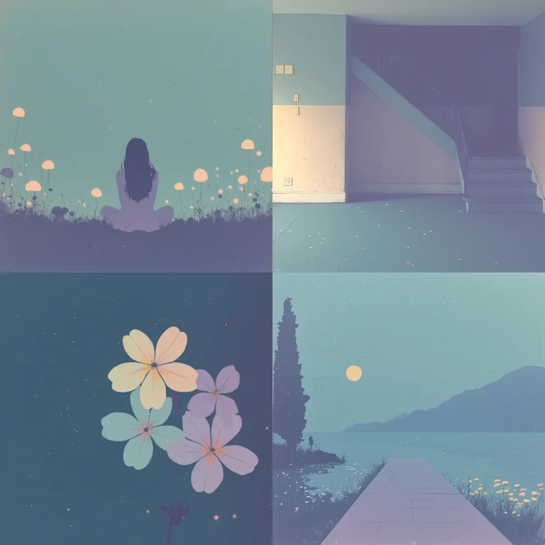 Soft colors create a gentle yet striking contrast with carefully positioned elements in a pastel palette.