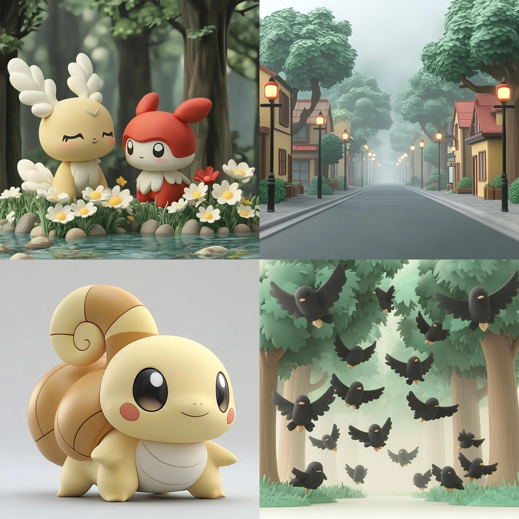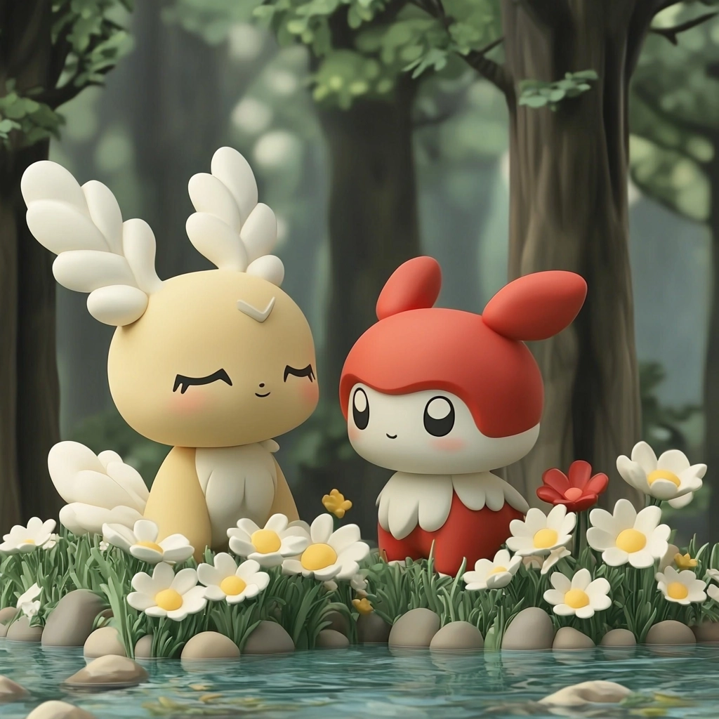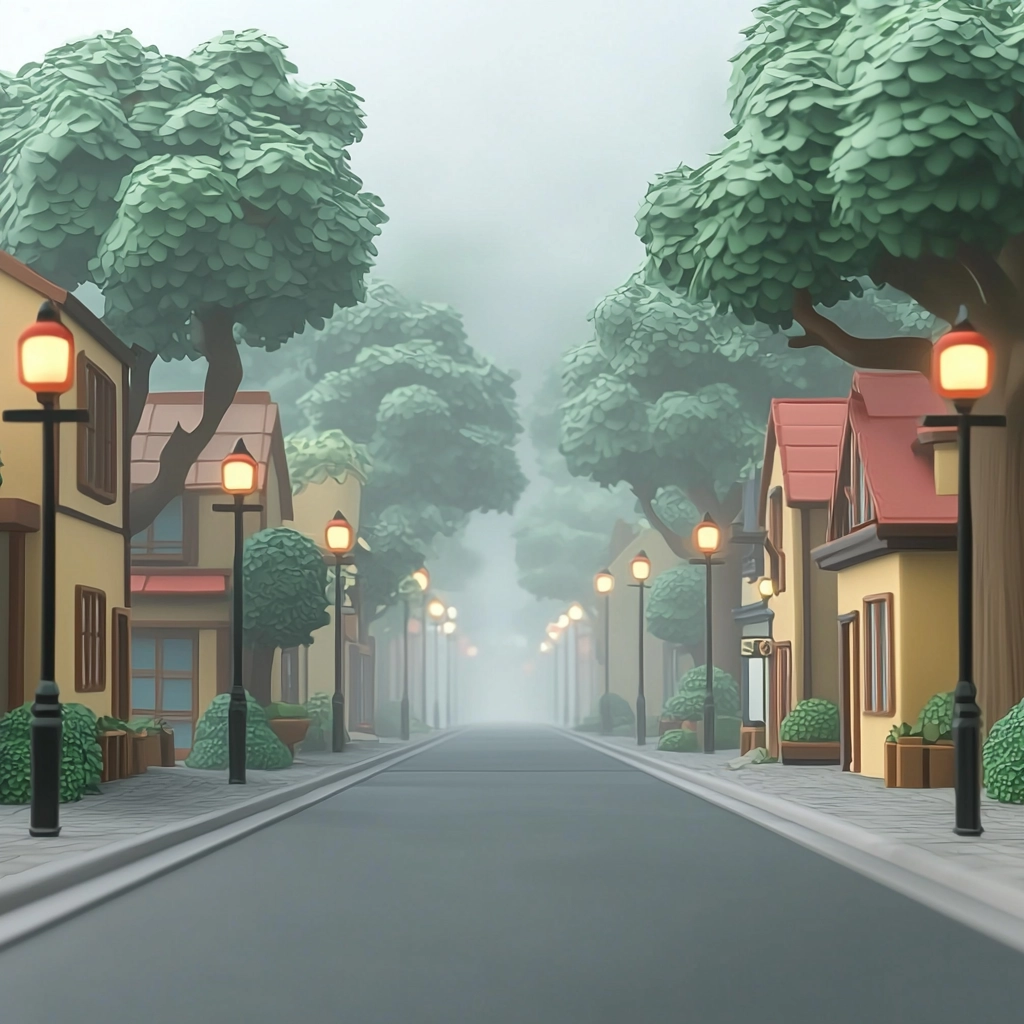 Lighting effects create a gentle ambiance with a soft glow. Colors are muted and pastel, contributing to the smooth and velvety texture. Spatial depth is subtly portrayed, enabling a cozy and inviting perception. The texture is soft and plush-like, enhancing the overall visual comfort.
