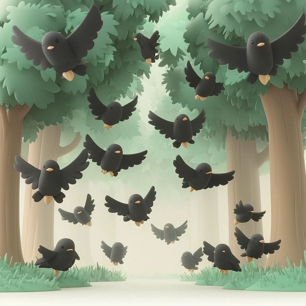 Smooth gradient shading with sweet pastel tones and forest-like elements.