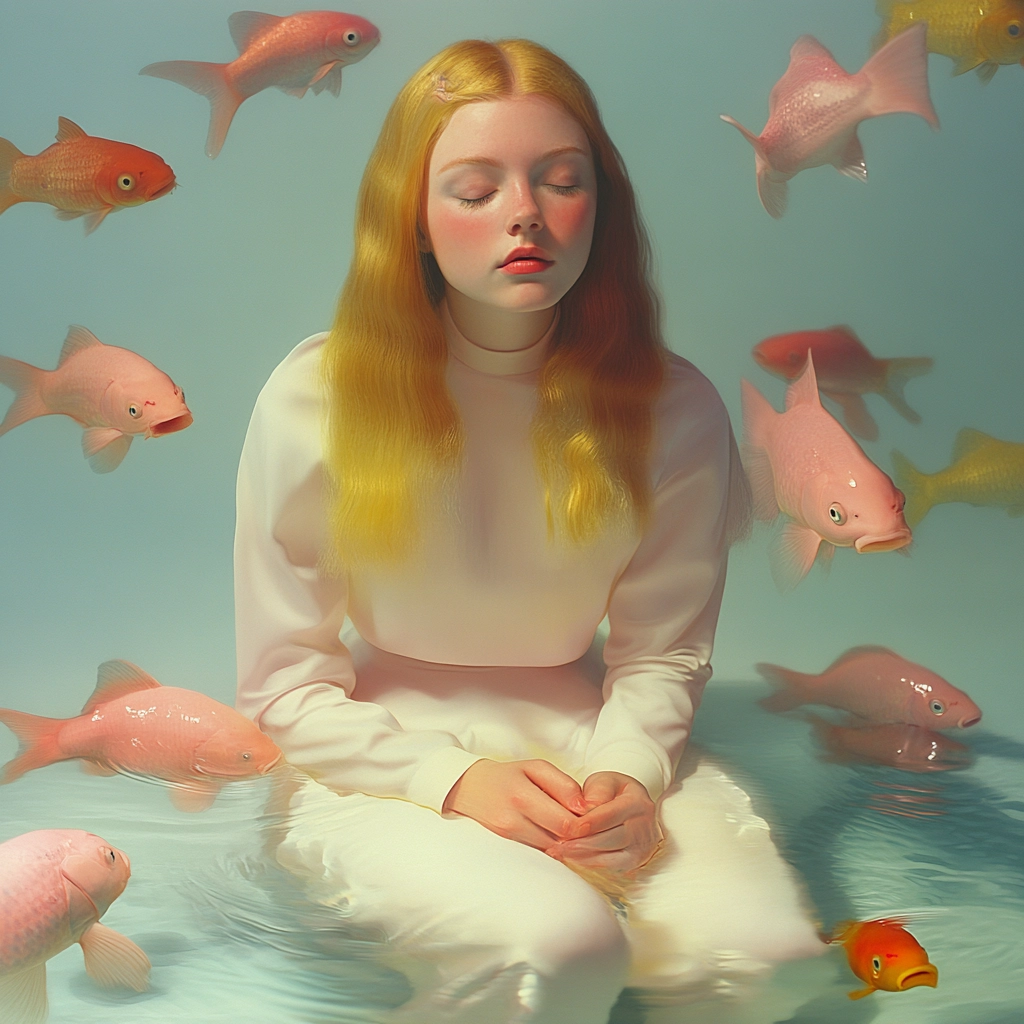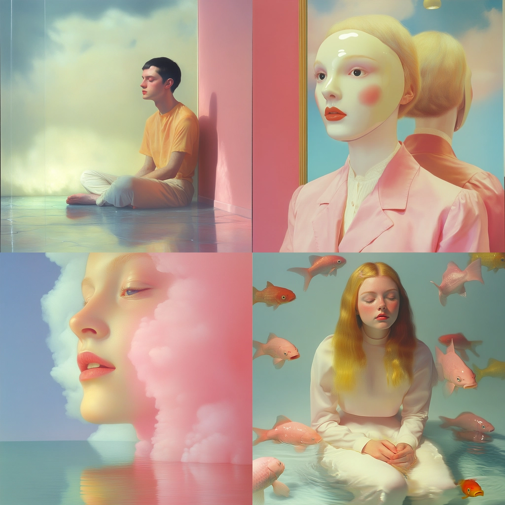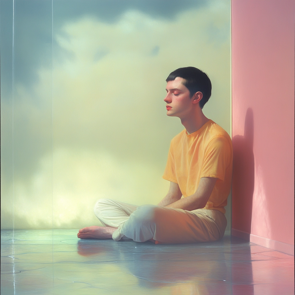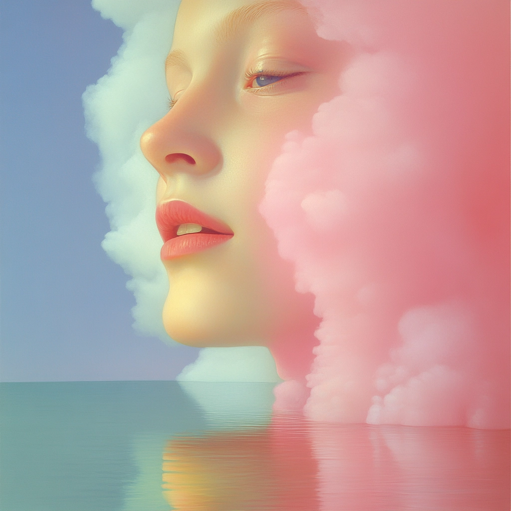 Gentle lighting softly illuminates surfaces, blending colors with seamless transitions. A spatial depth is suggested through layered elements and smooth gradients, while textures are conveyed through delicate brushwork and soft contrast.