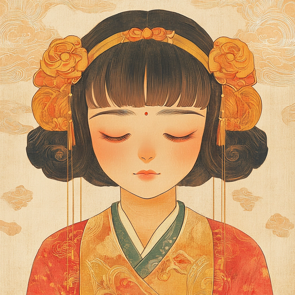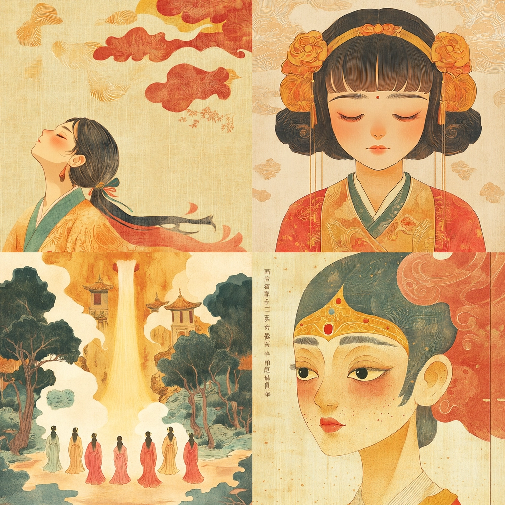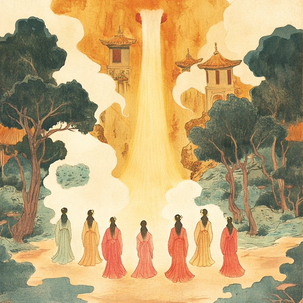 The lighting is soft and diffused, creating a gentle ambiance. Colors are muted with a pastel quality, emphasizing subtle variations in shade. The spatial arrangement is harmonious, with elements carefully balanced. Textures are finely detailed, imparting a tactile sense of elaborate craftsmanship.