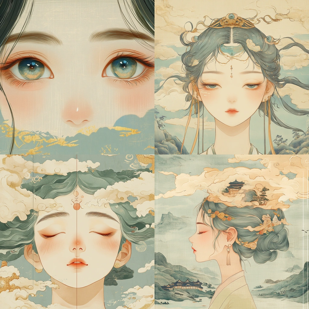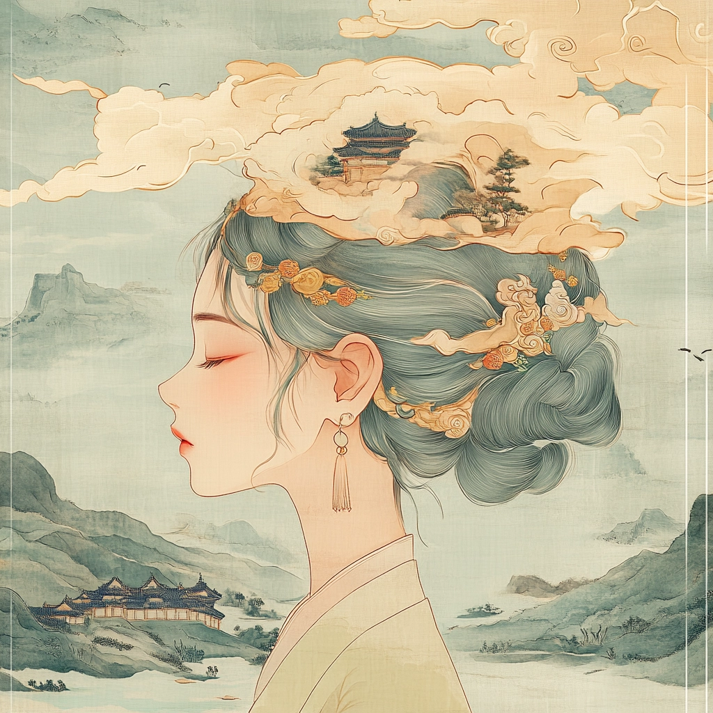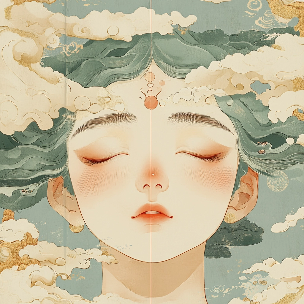 The lighting is soft, enhancing the gentle pastel colors. Subtle textures give a smooth, flowing appearance. Space is arranged to provide balance and elegance.