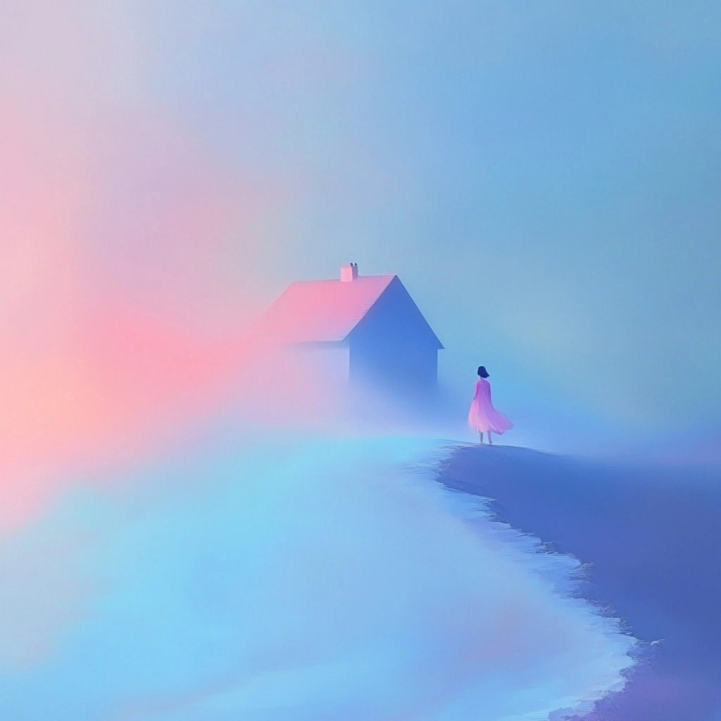 Soft gradients create a dreamlike landscape punctuated by subtle details.
