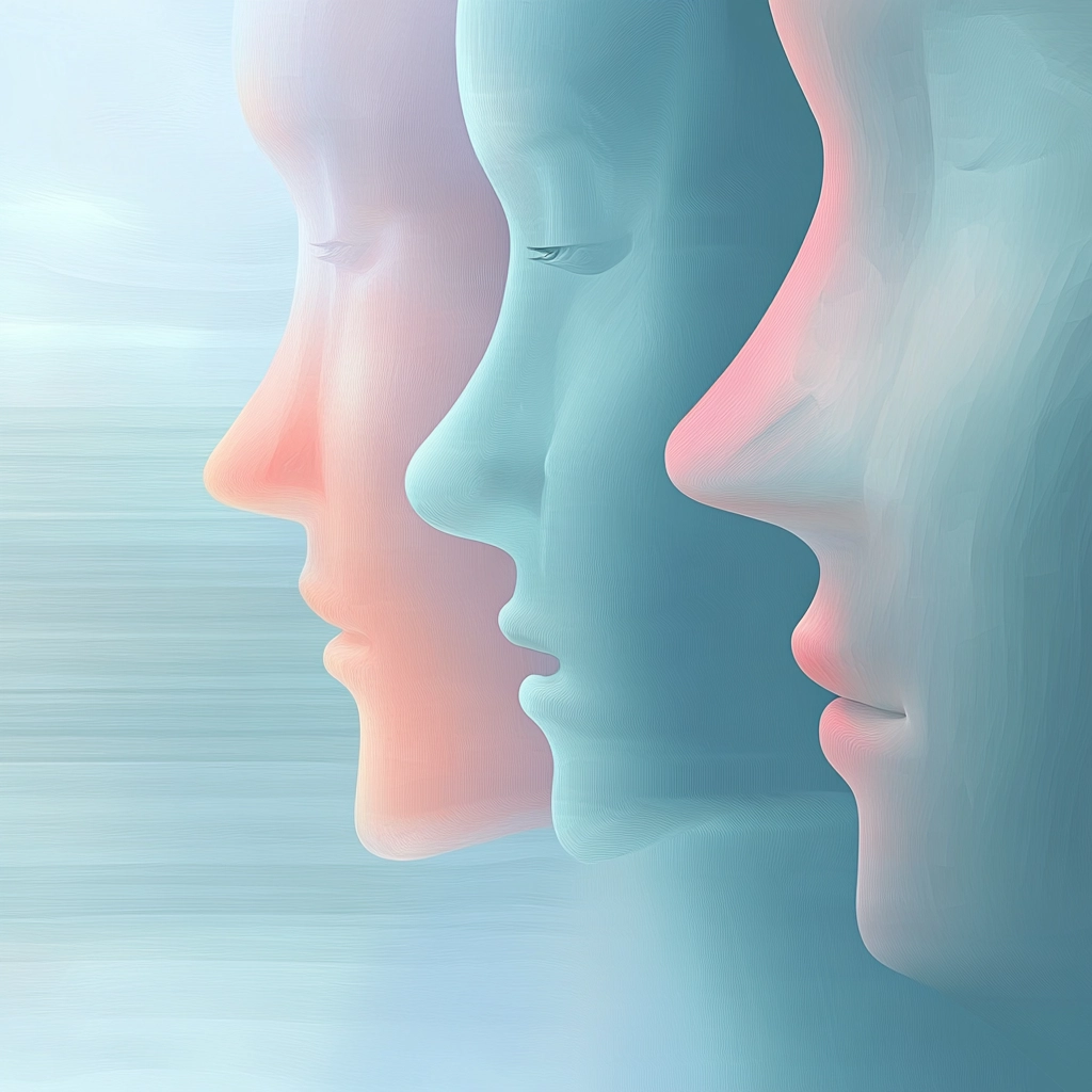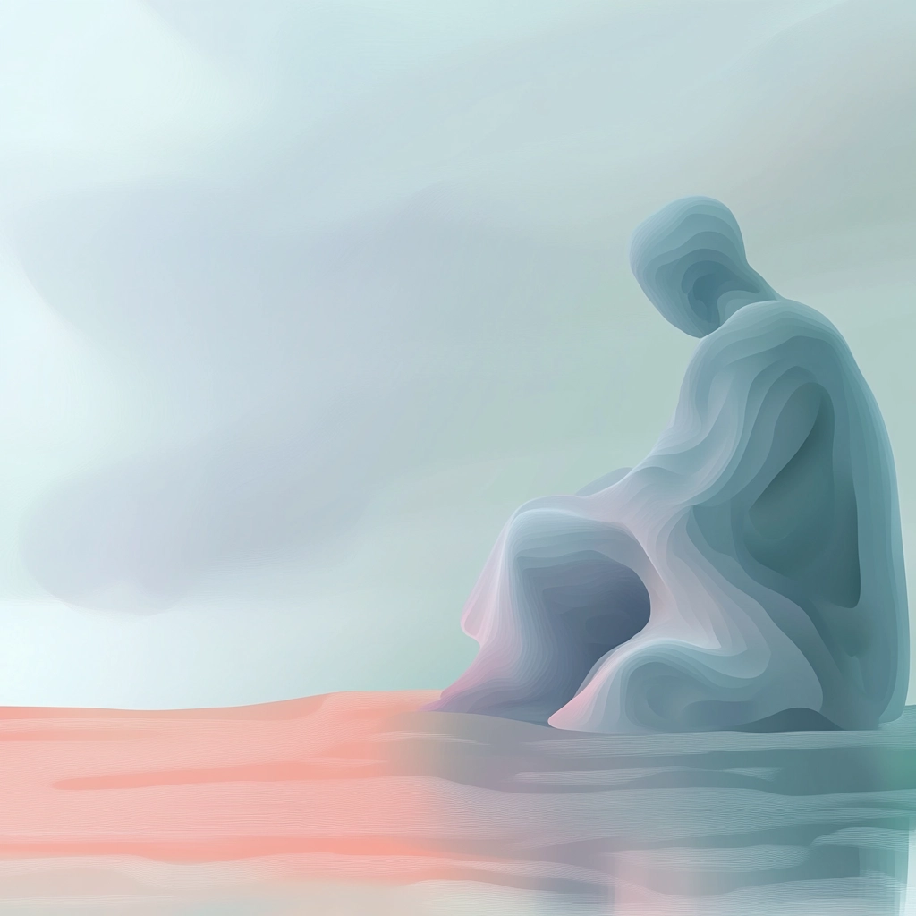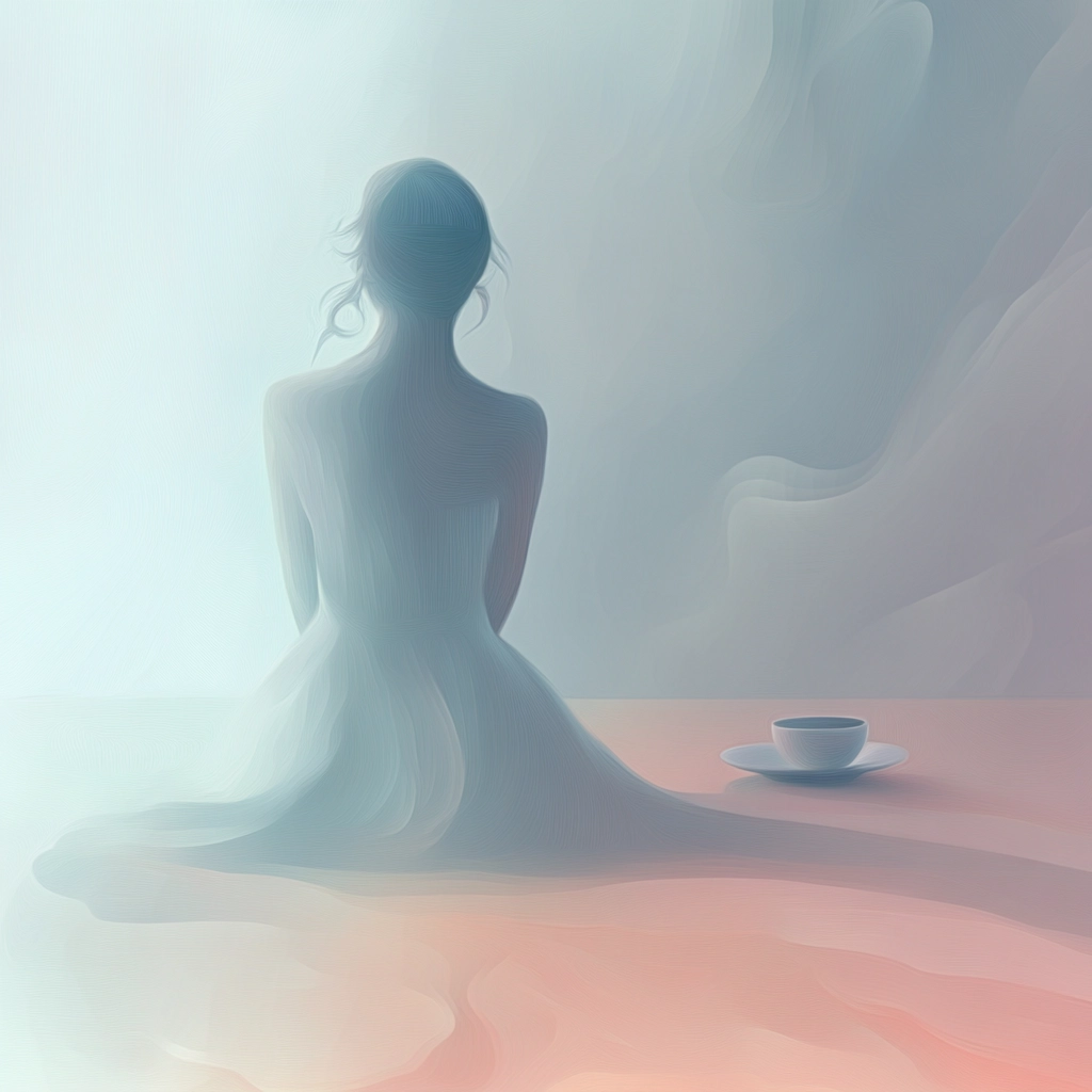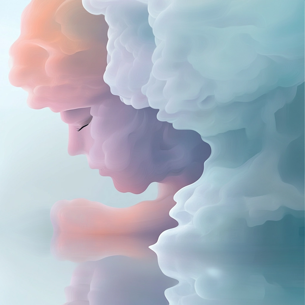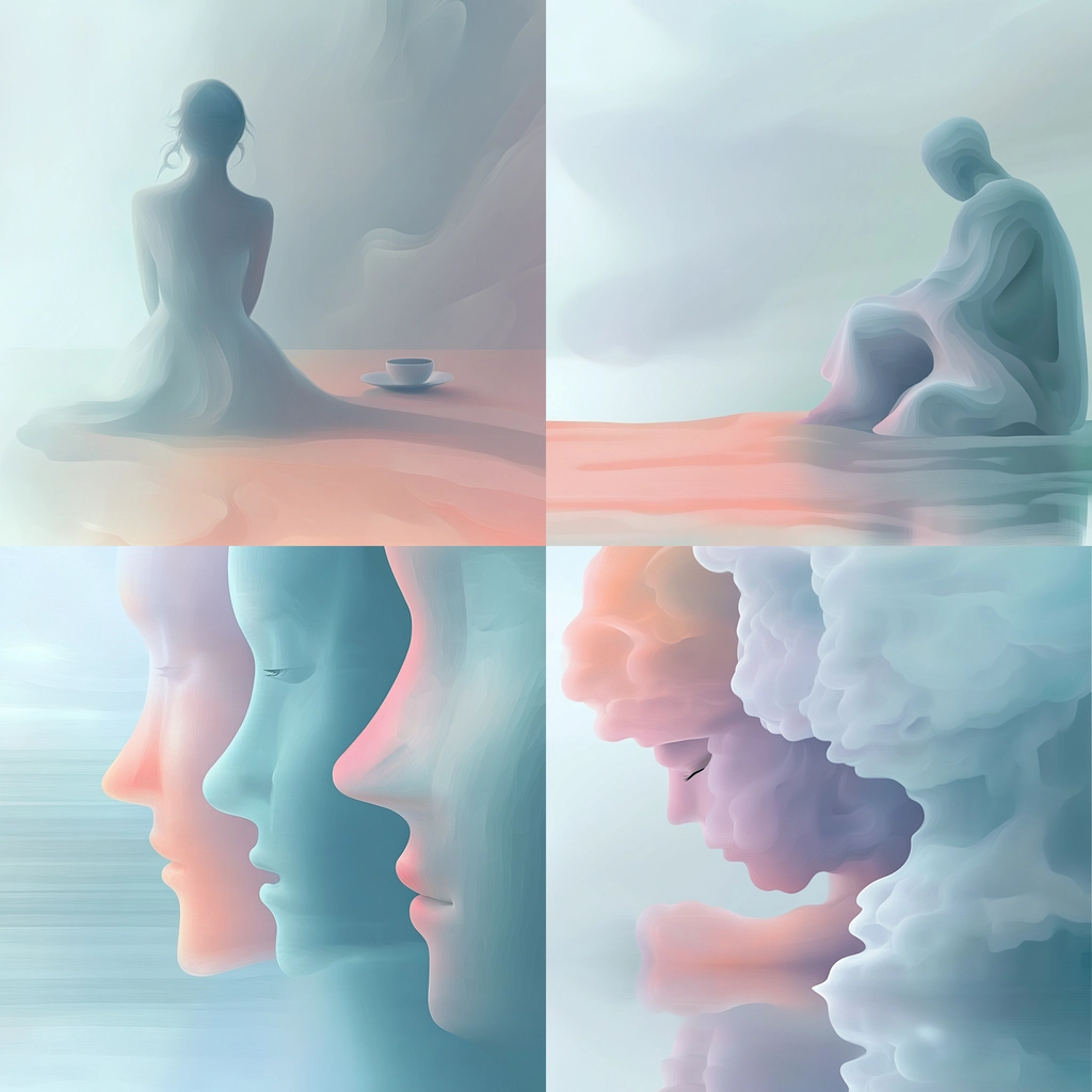 The lighting is soft and diffused, producing smooth transitions across elements. Pastel colors blend fluidly, with a gradient effect offering a sense of gentle motion. The texture is delicate and smooth, enhancing the serene visual quality.