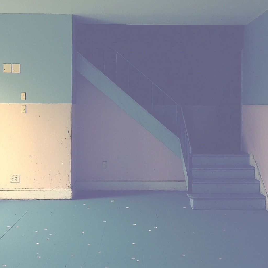 Soft pastels dominate, blended in a flat, matte texture creating an intimate spatial arrangement. Light is diffused, muting shadows to enhance the gentle color transitions. The smooth surface avoids any hints of roughness, maintaining visual simplicity.