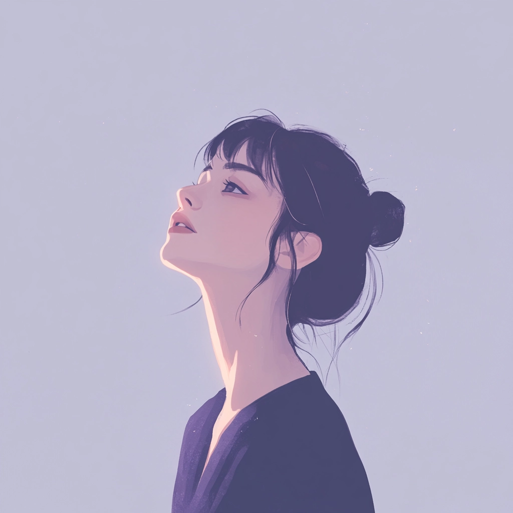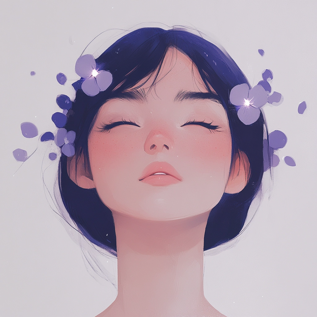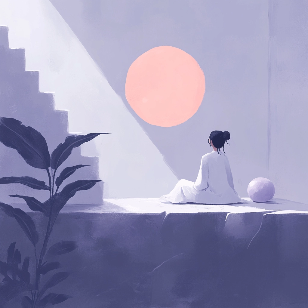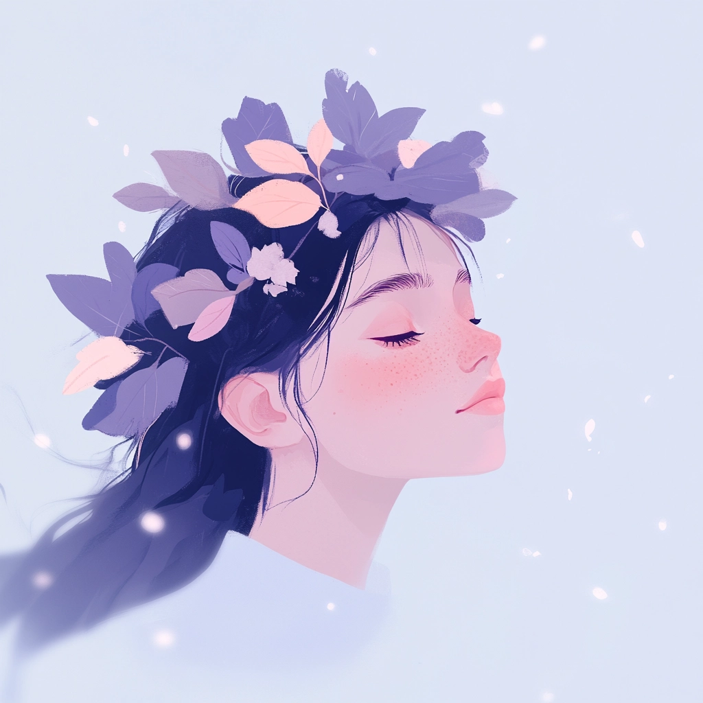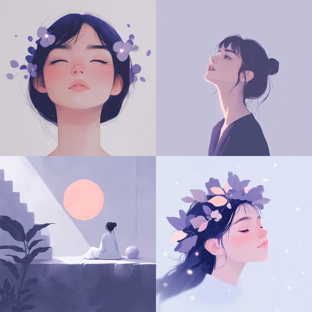 The composition balances cool pastel tones and smooth textures, evoking a sense of gentleness in color and line use.