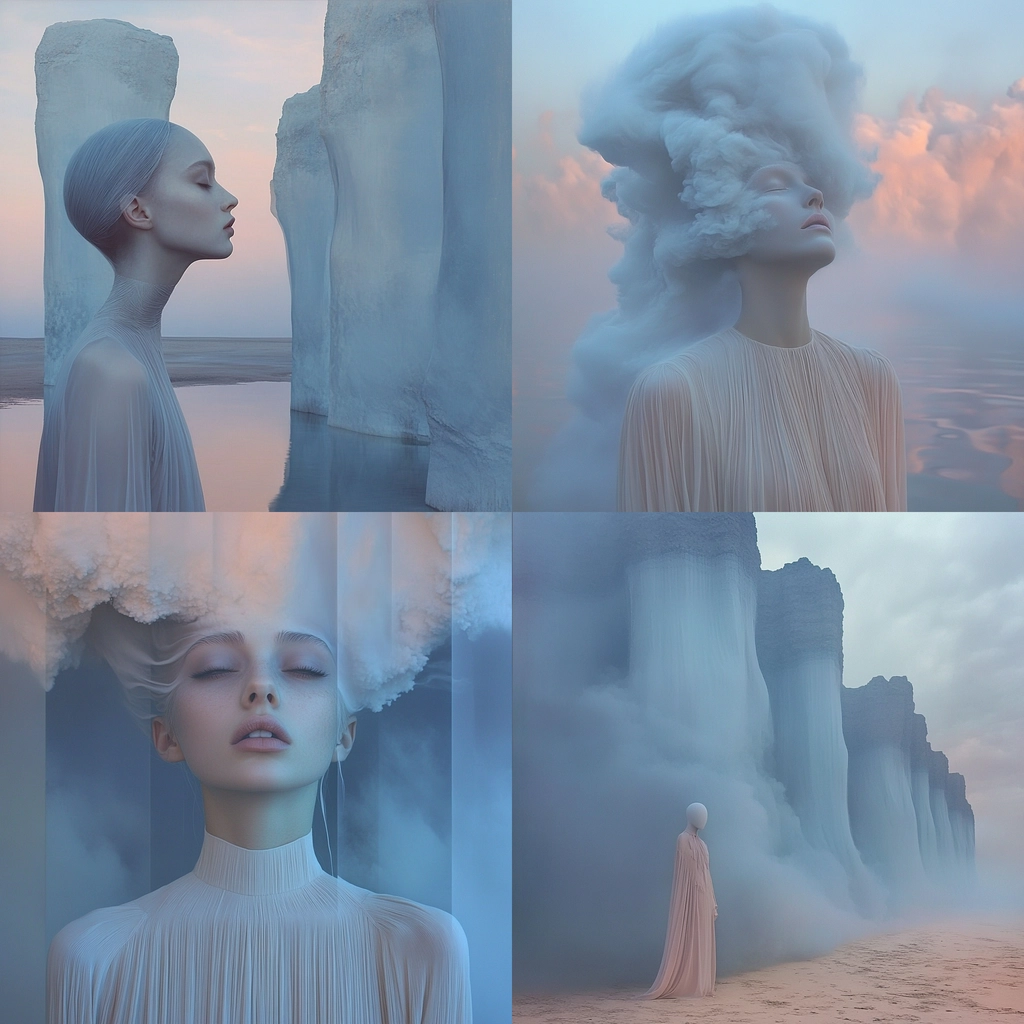 Gentle pastel colors create ethereal lighting effects and soft textures.