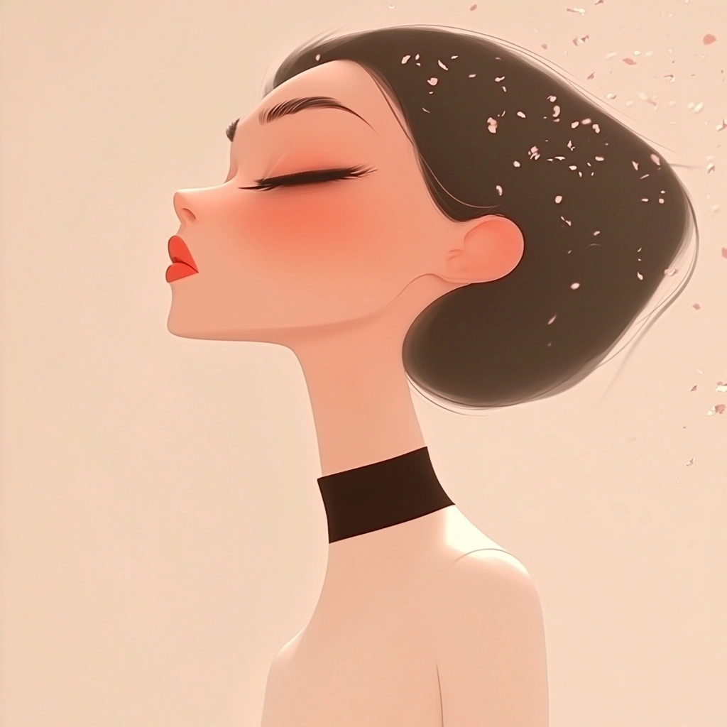 Lighting effects exhibit a smooth transition, creating a soft ambiance without harsh contrasts. Color characteristics lean toward muted pastels, demonstrating a seamless blend that offers a serene balance. The spatial sense is intimate, with elements appearing to softly interconnect, giving depth without overpowering perspective. Textures are carefully rendered, suggesting softness and fluidity.