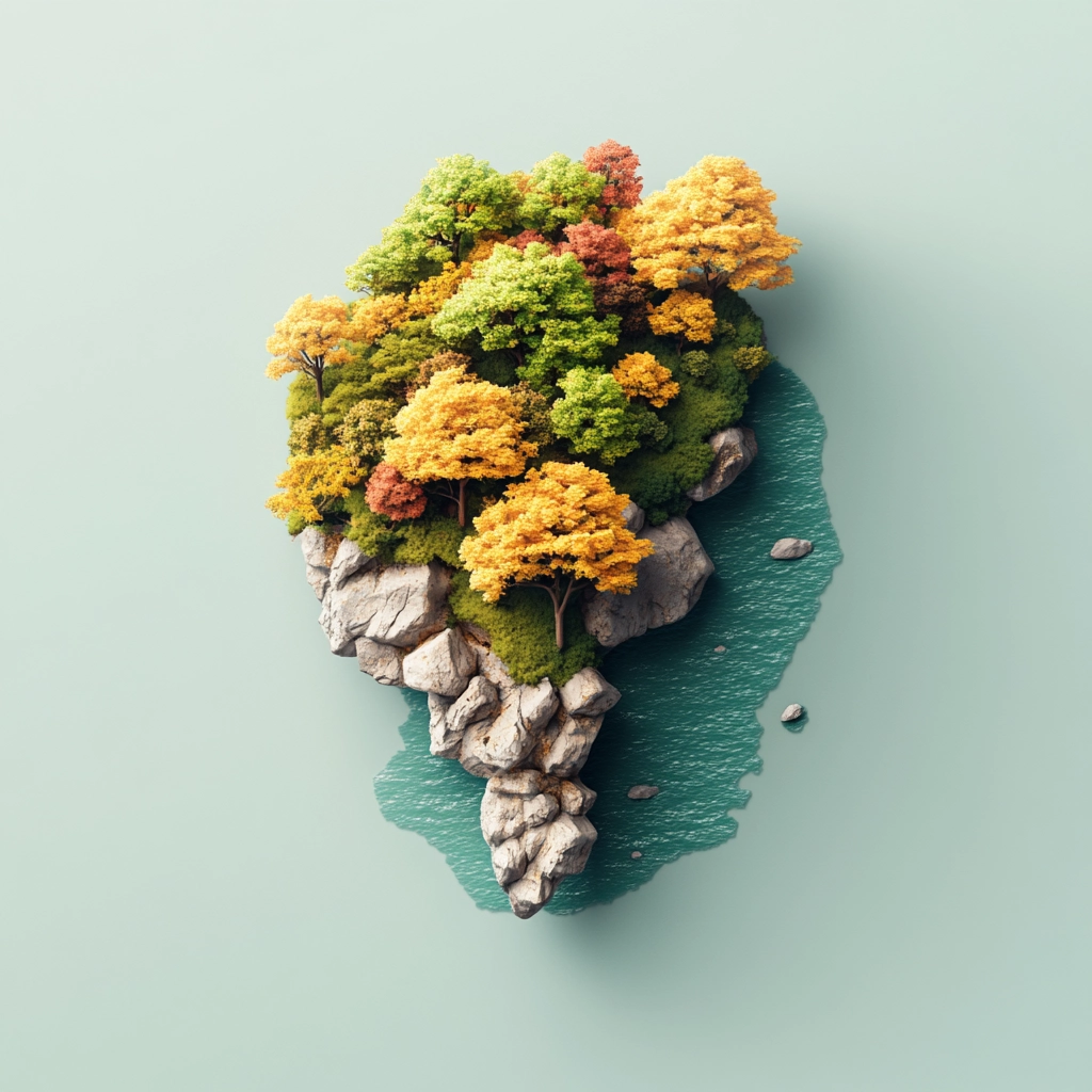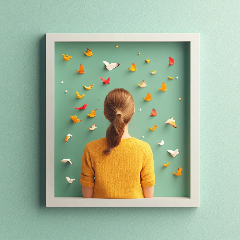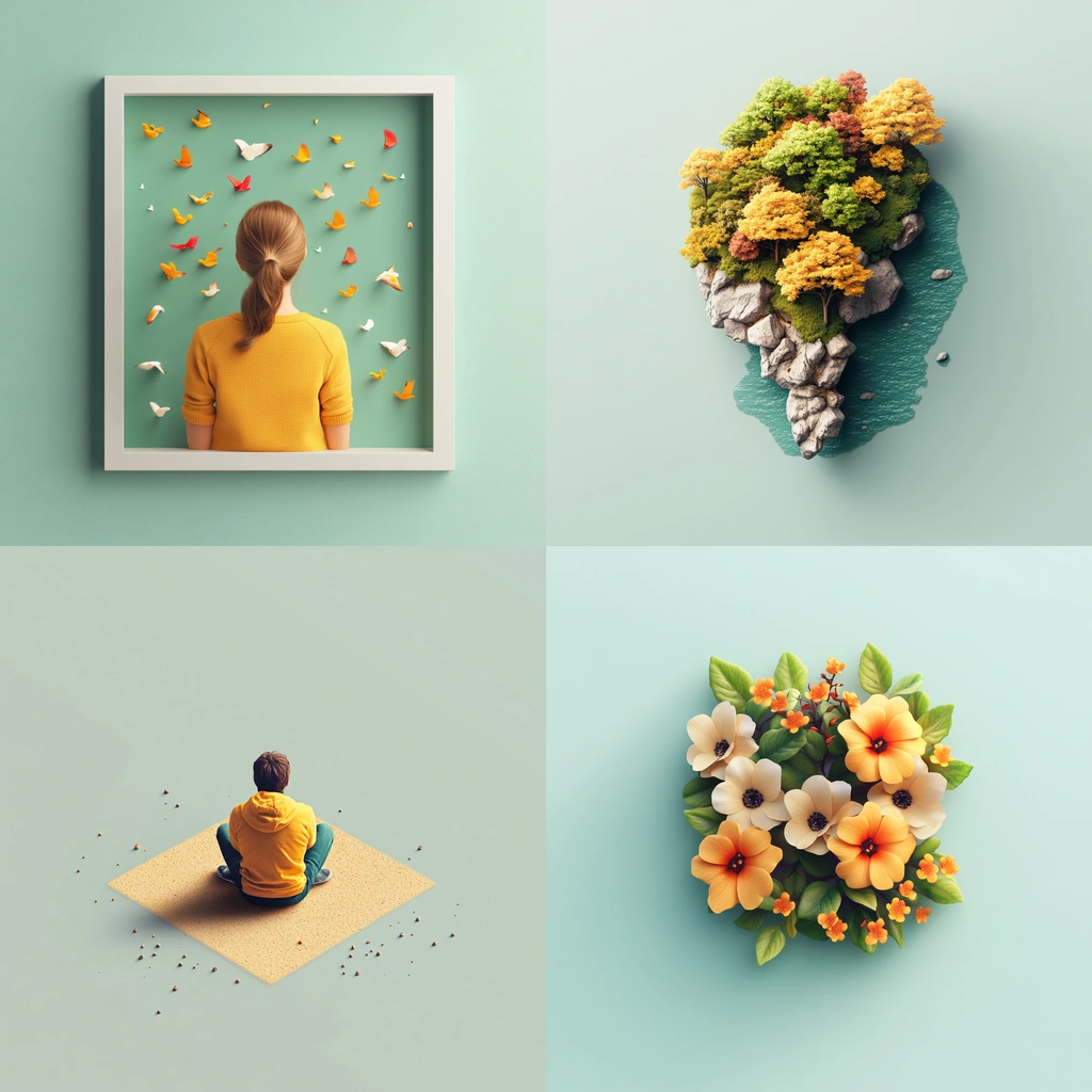 Soft lighting enhances the pastel color palette, creating a muted, calming ambiance. Clean lines and gentle textures give a sense of clarity and precision. The spatial arrangement feels balanced and intimate.